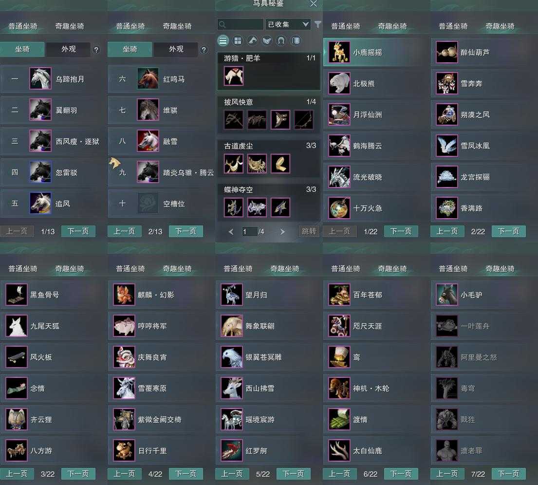 【坐骑】9个[踏炎腾云, 西风瘦逐狱, 乌蹄抱月, 维骐]