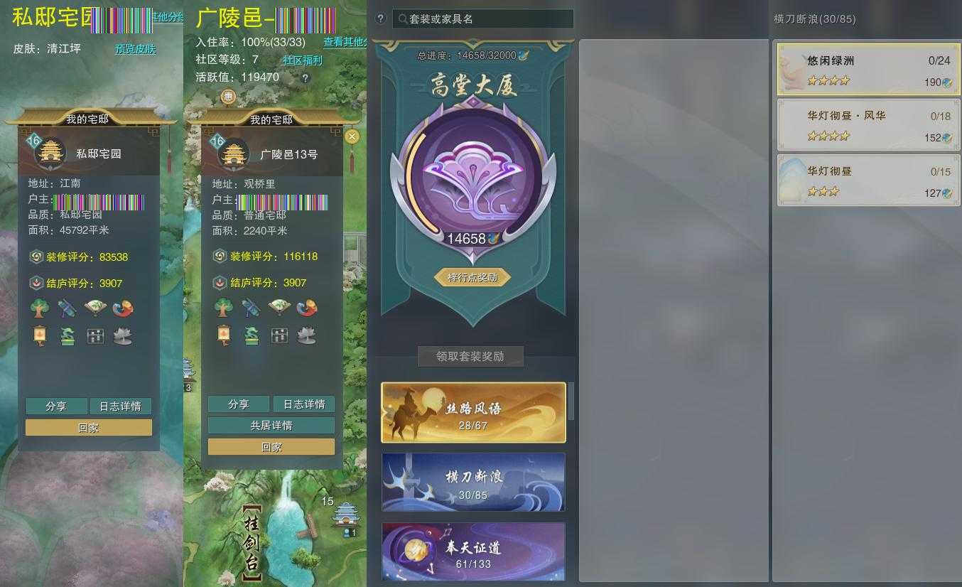 【家园】房屋等级16,社区等级了,私邸宅园,梓行点14658