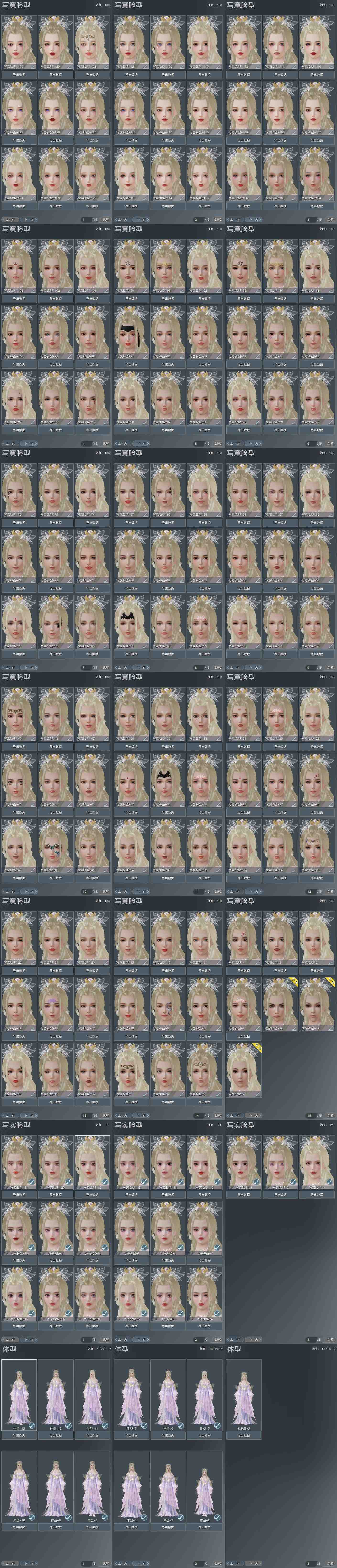 【捏脸】写意脸型133个,写实脸型21个,体型13个