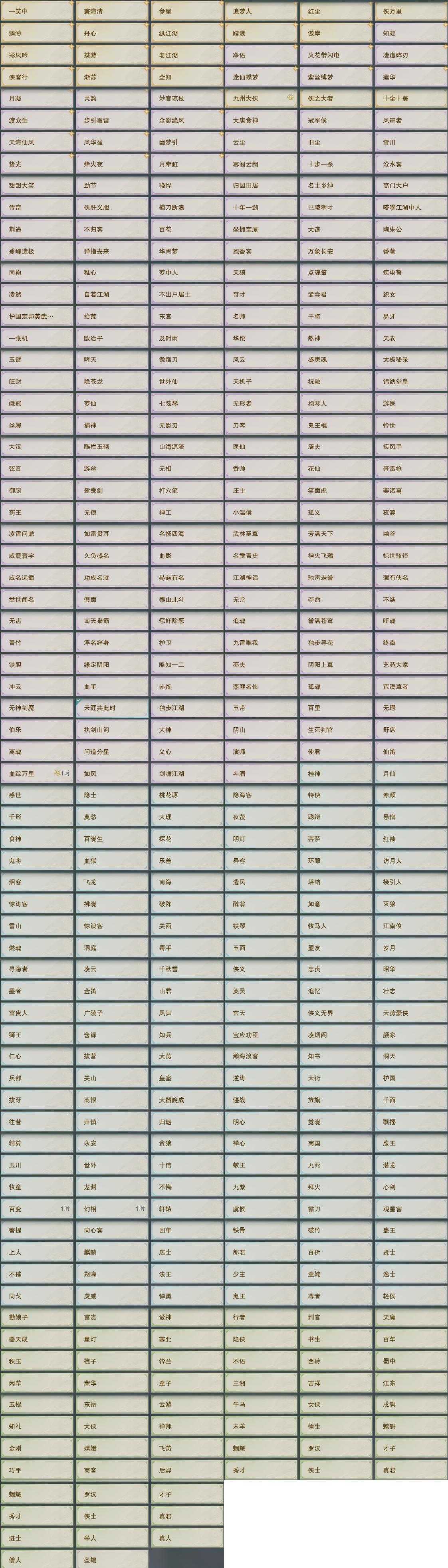 【称号】[知凝, 幽梦引, 纵江湖, 侠万里, 迷仙蝶梦, 月凝]