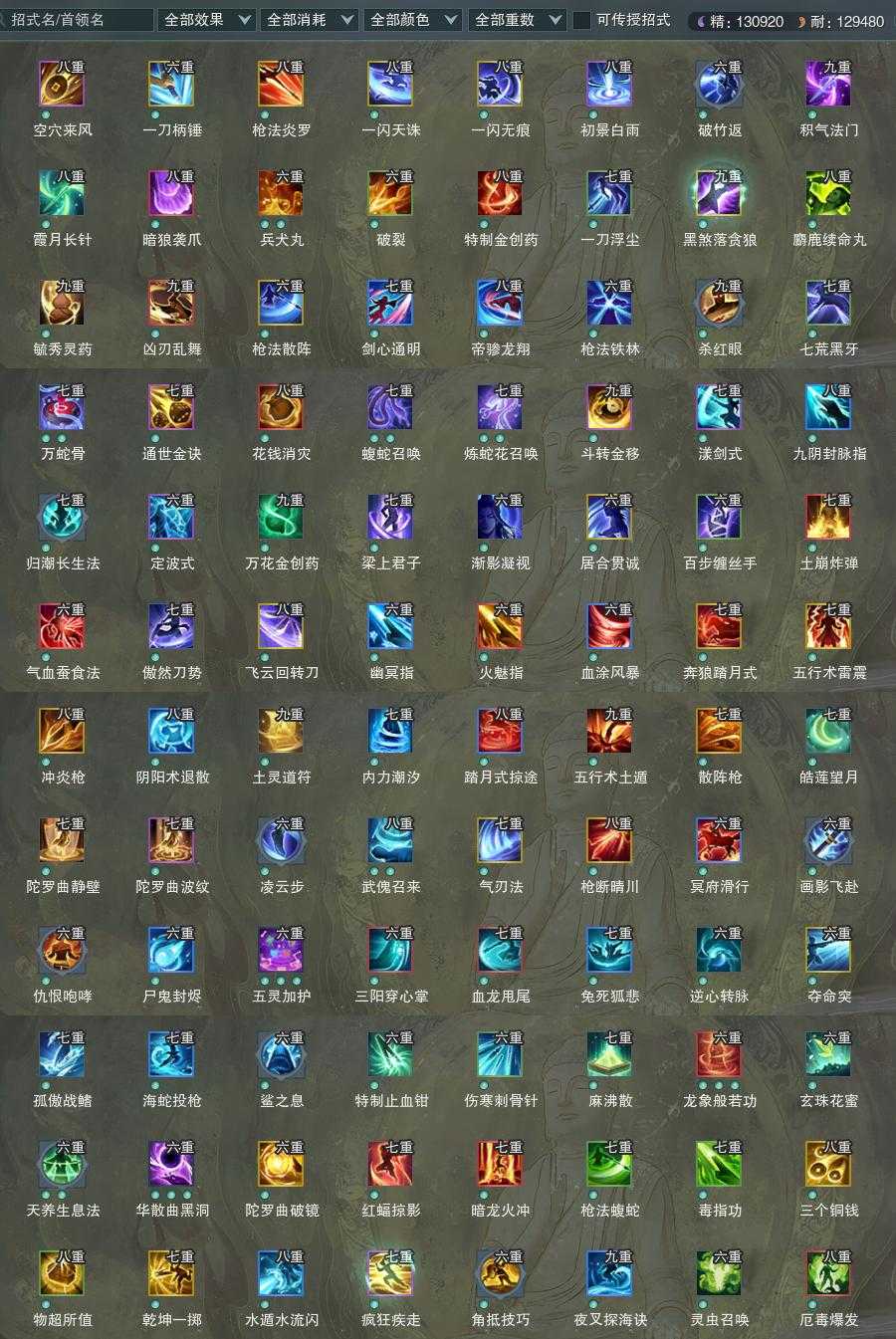 【橙武】(仅本门派)[120小铁*622, 130小铁*291, 100玄晶*1, 80玄晶*1, 110小铁*285, 100小铁*210, 95小铁*311, 90小铁*746, 80小铁*370, 70小铁*164, 110CW昆山玉碎, 110CW烛幽, 100CW蛇影迷蝶, 95CW绛玉拨云, 90CW太上忘情]
