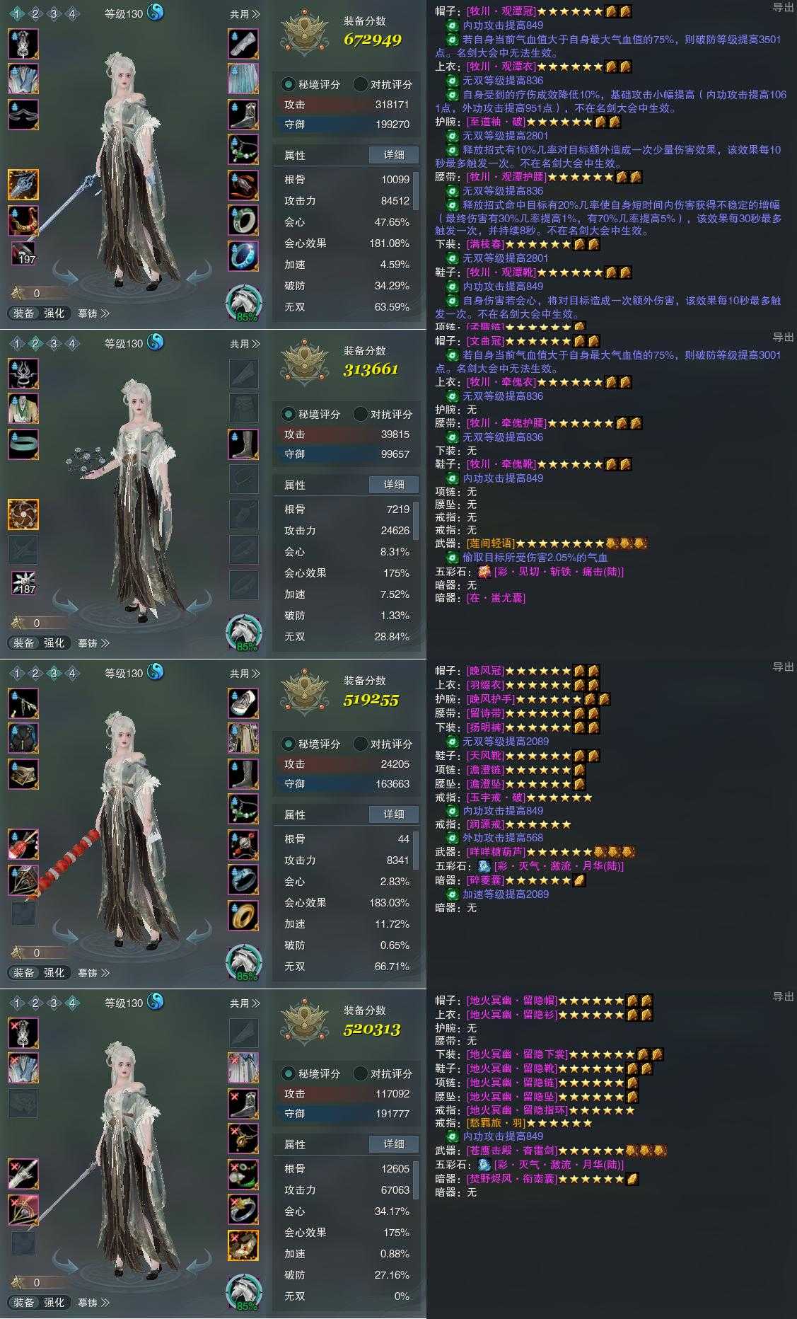 【装备】130级,紫霞功PVE672949,装备二313661,太虚剑意PVE519255,紫霞功PVP520313