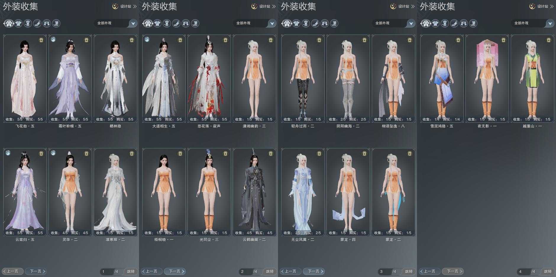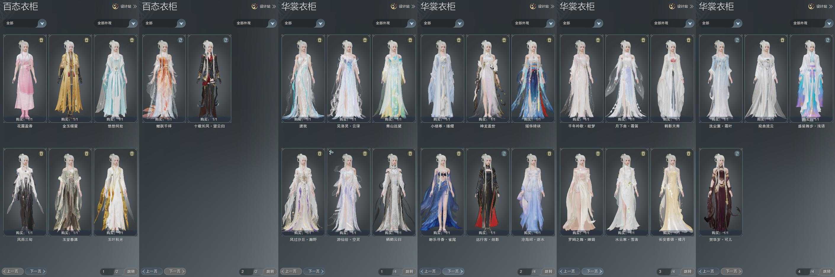 单盒成衣:[二代重阳衣, 红腿盒衣, 青山盒衣, 熊猫盒衣, 蓝洛神衣, 渡我衣, 紫沙丘衣]
