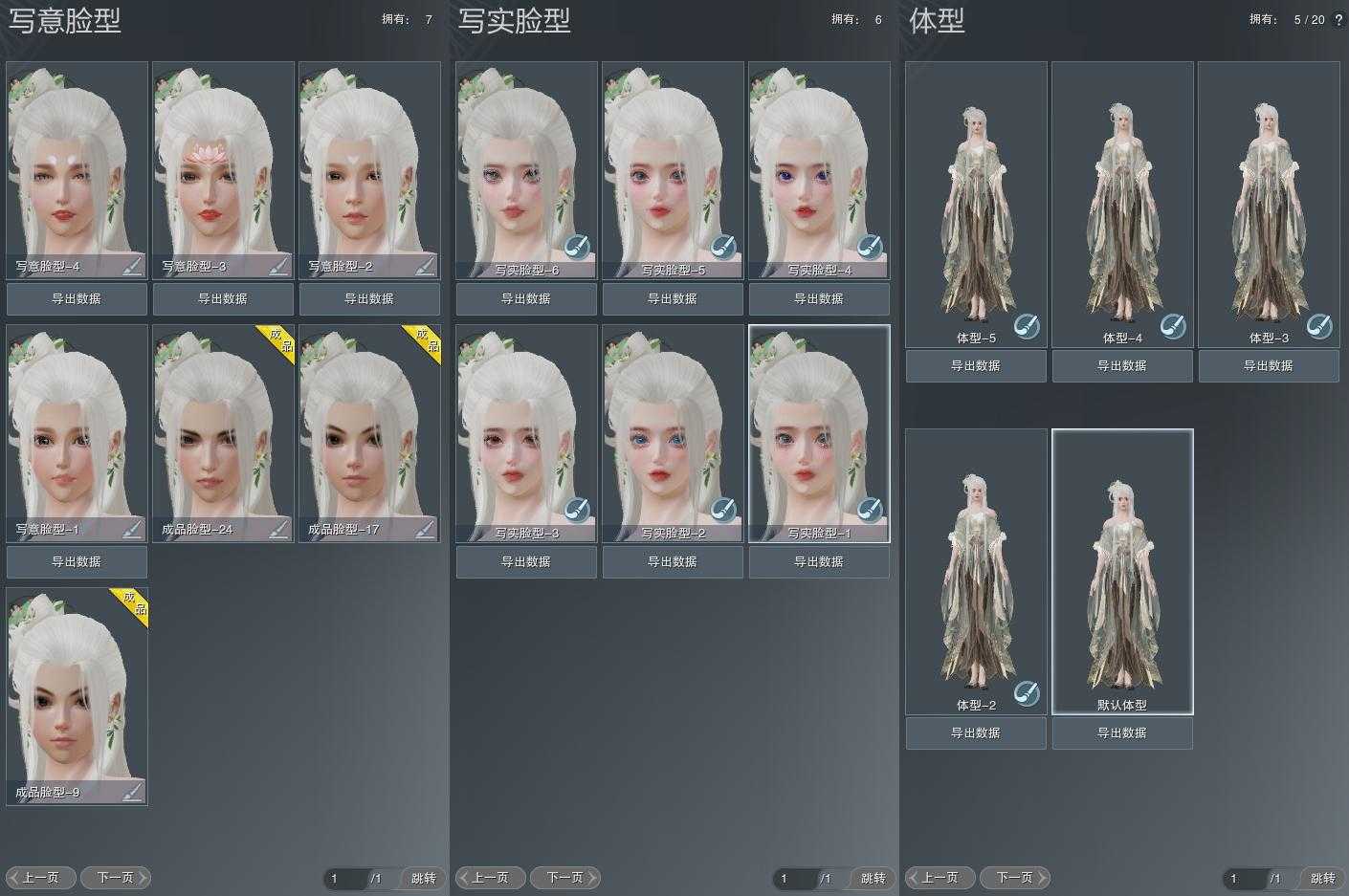 【捏脸】写意脸型7个,写实脸型6个,体型5个