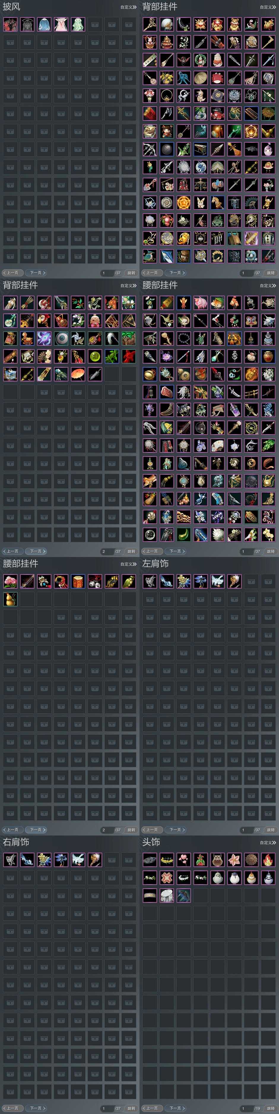 【肩饰】6左,6右,[栖鹤云归·左, 双鱼曳波·极乐·左, 鹤影天青·左][栖鹤云归·右, 鹤影天青·右]