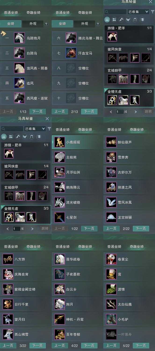【坐骑】7个[踏炎腾云, 西风瘦逐狱, 乌蹄抱月]