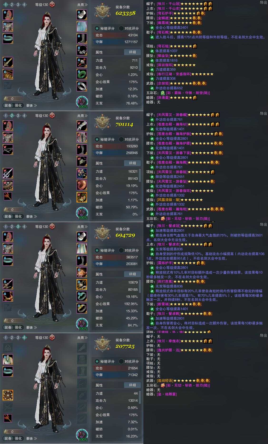 【装备】130级,铁牢律PVE623358,傲血战意PVP701114,傲血战意PVE694729,装备四207725