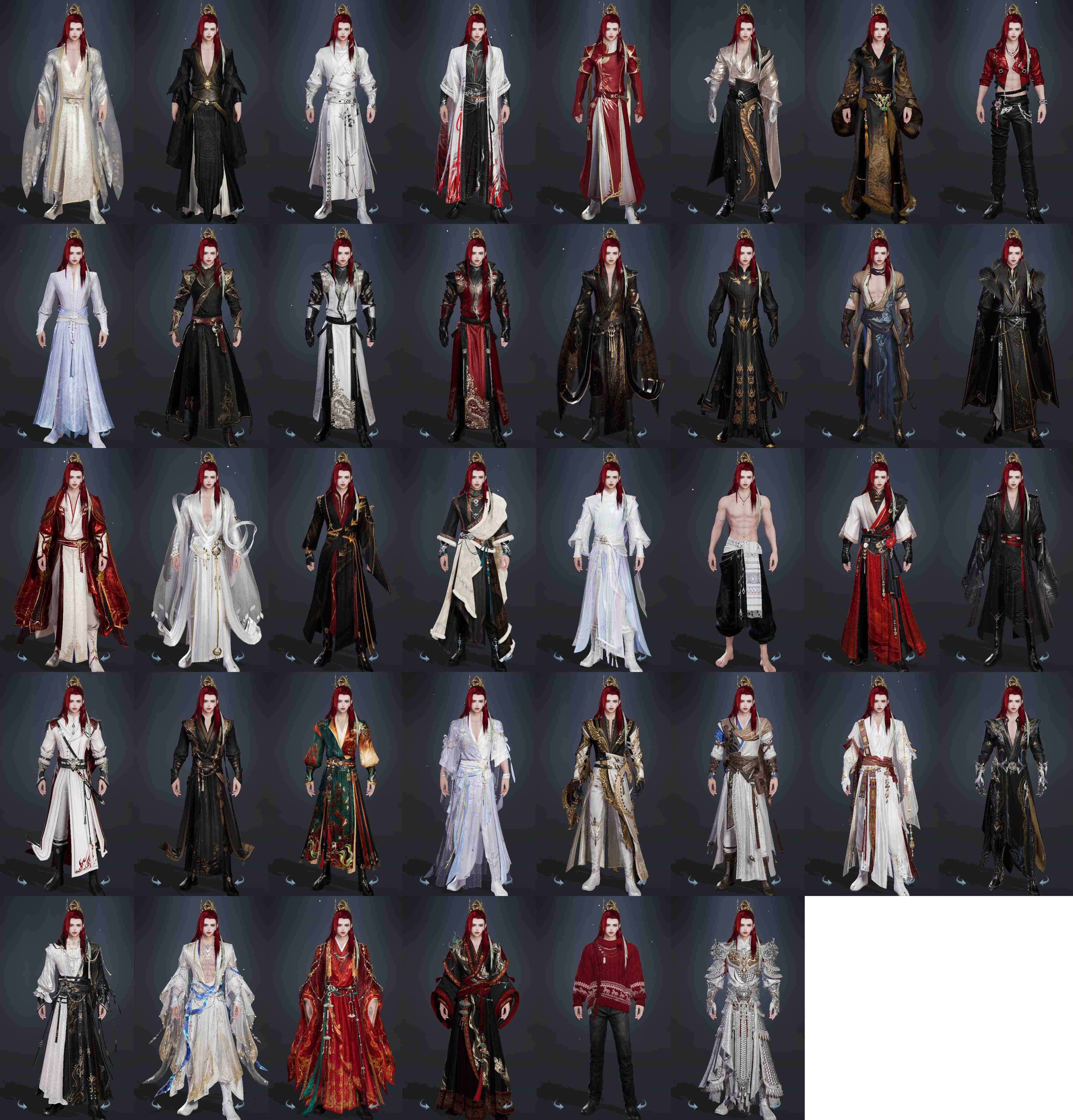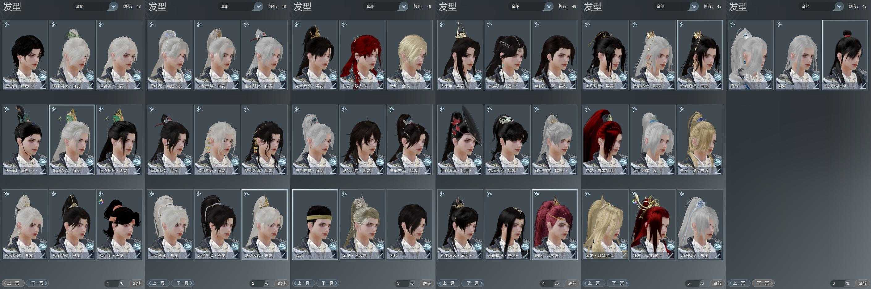 【发型】金发4个[资历金, 鸡金, 三代金, 无风金发], 红发4个[六红, 紫发, 小资历红, 十五红], 黑发22个, 白发17个, 盒子发型[雪月白发, 黑楼兰黑发, 黑楼兰白发, 净尘黑发, 黑红尘黑发, 黑红尘白发, 踏青黑发, 红黑妖眸盒黑发, 黑幽馥黑发, 黑藏袍黑发, 龙吟盒黑发, 墨龙盒黑发, 墨龙盒白发, 仙剑黑发, 络羽黑发, 傀儡黑发, 仙剑白发, 络羽白发, 傀儡白发, 十七黑发, 黑战国黑发, 十七白发, 红毛衣黑发], 总页数6