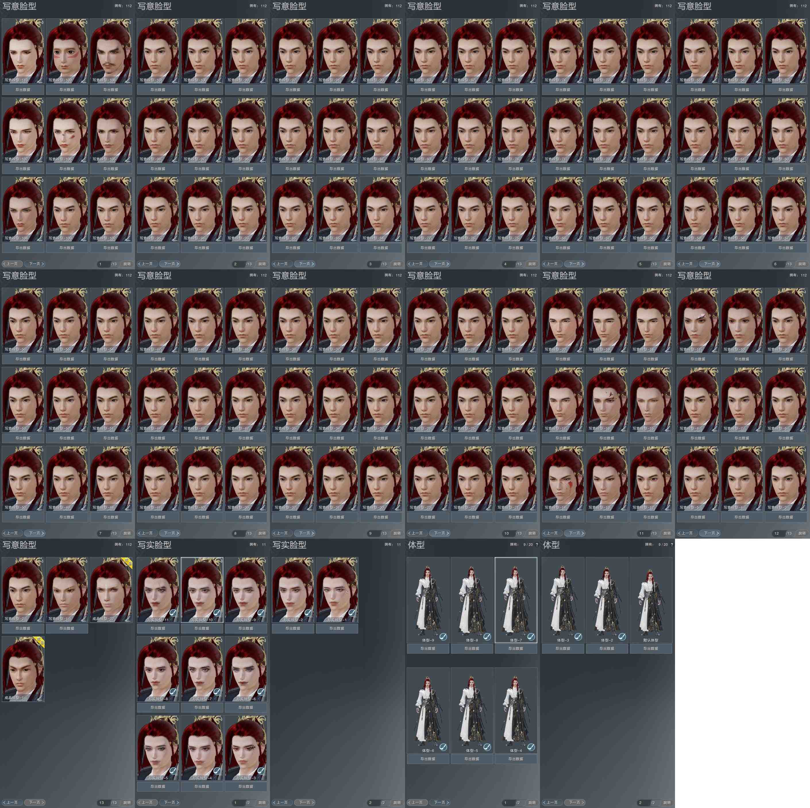 【捏脸】写意脸型112个,写实脸型11个,体型9个