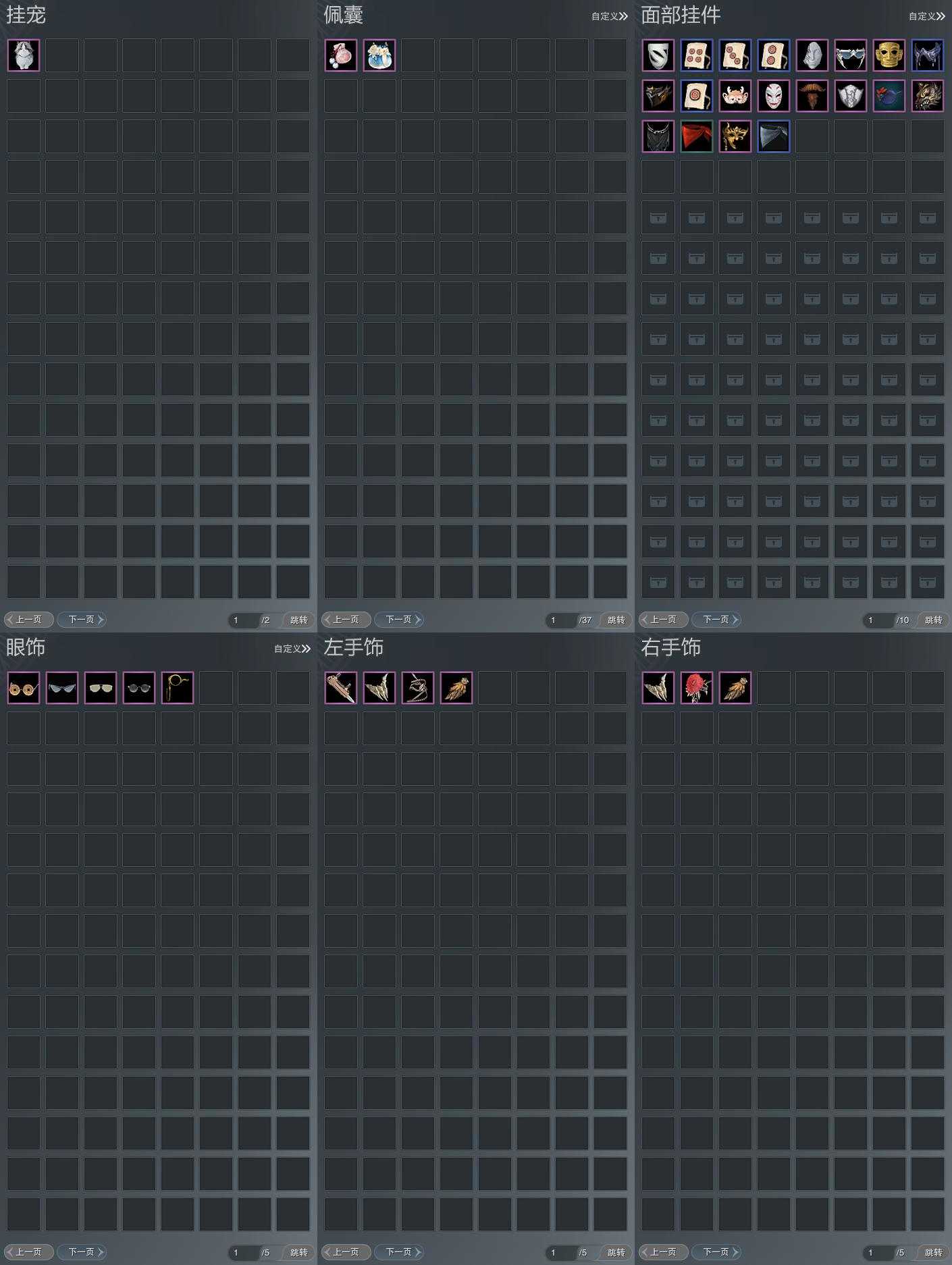 【肩饰】10左,9右,[银枪照夜·裂云·左, 玄龙夜舞·左, 双鱼曳波·如意·左, 云旌望捷·左, 短褐狂裘·左, 歃血关山·左, 华焰披锦·左][银枪照夜·裂云·右, 玄龙夜舞·右, 云旌望捷·右, 短褐狂裘·右, 歃血关山·右]