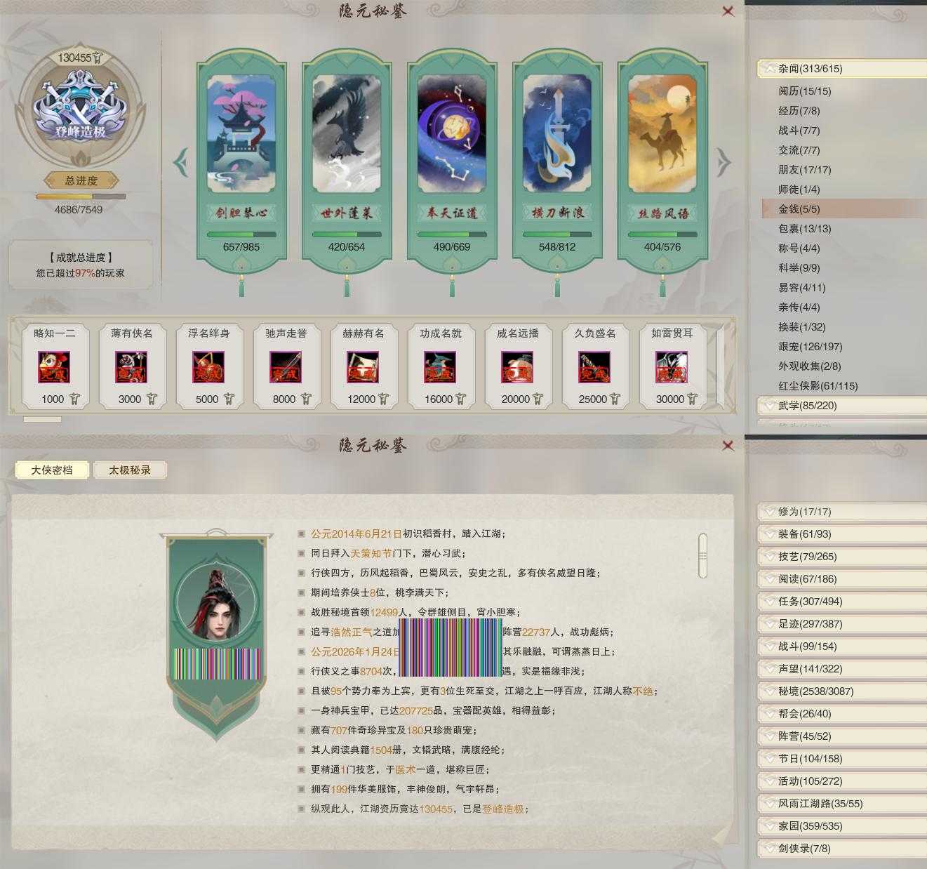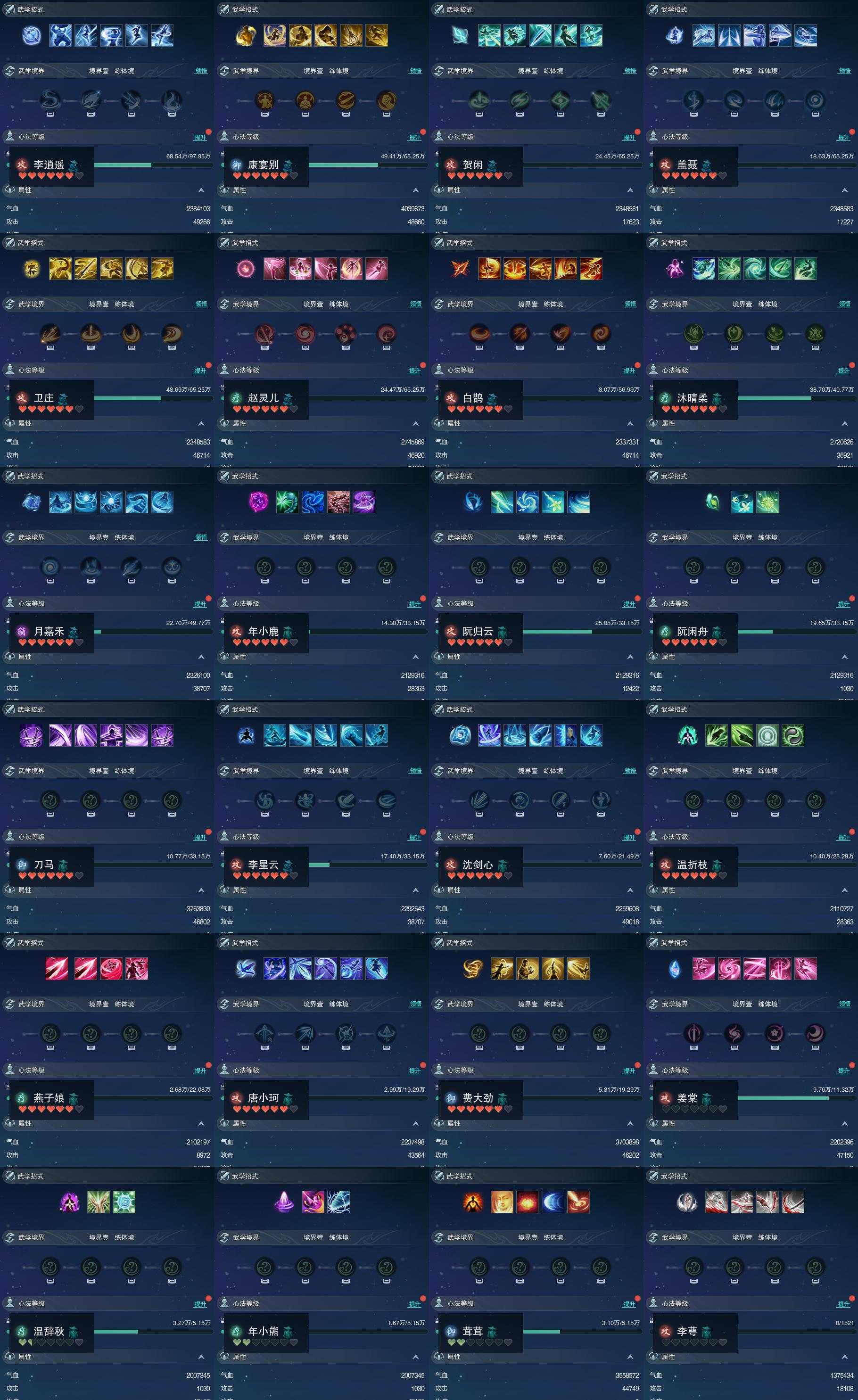【同伴】李逍遥84级境界壹,康宴别81级境界壹,贺闲意81级境界壹,盖聂81级境界壹,卫庄意81级境界壹,赵灵儿81级境界壹,白鹊慈80级境界壹,沐晴柔79级境界壹,月嘉禾79级境界壹,年小鹿76级境界壹,阮归云76级境界壹,阮闲舟76级境界壹,刀马志76级境界壹,李星云76级境界壹,沈剑心74级境界壹,温折枝74级境界壹,燕子娘73级境界壹,唐小珂72级境界壹,费大劲72级境界壹,姜棠志68级境界壹,温辞秋62级境界壹,年小熊62级境界壹,茸茸志62级境界壹,李萼志1级境界壹