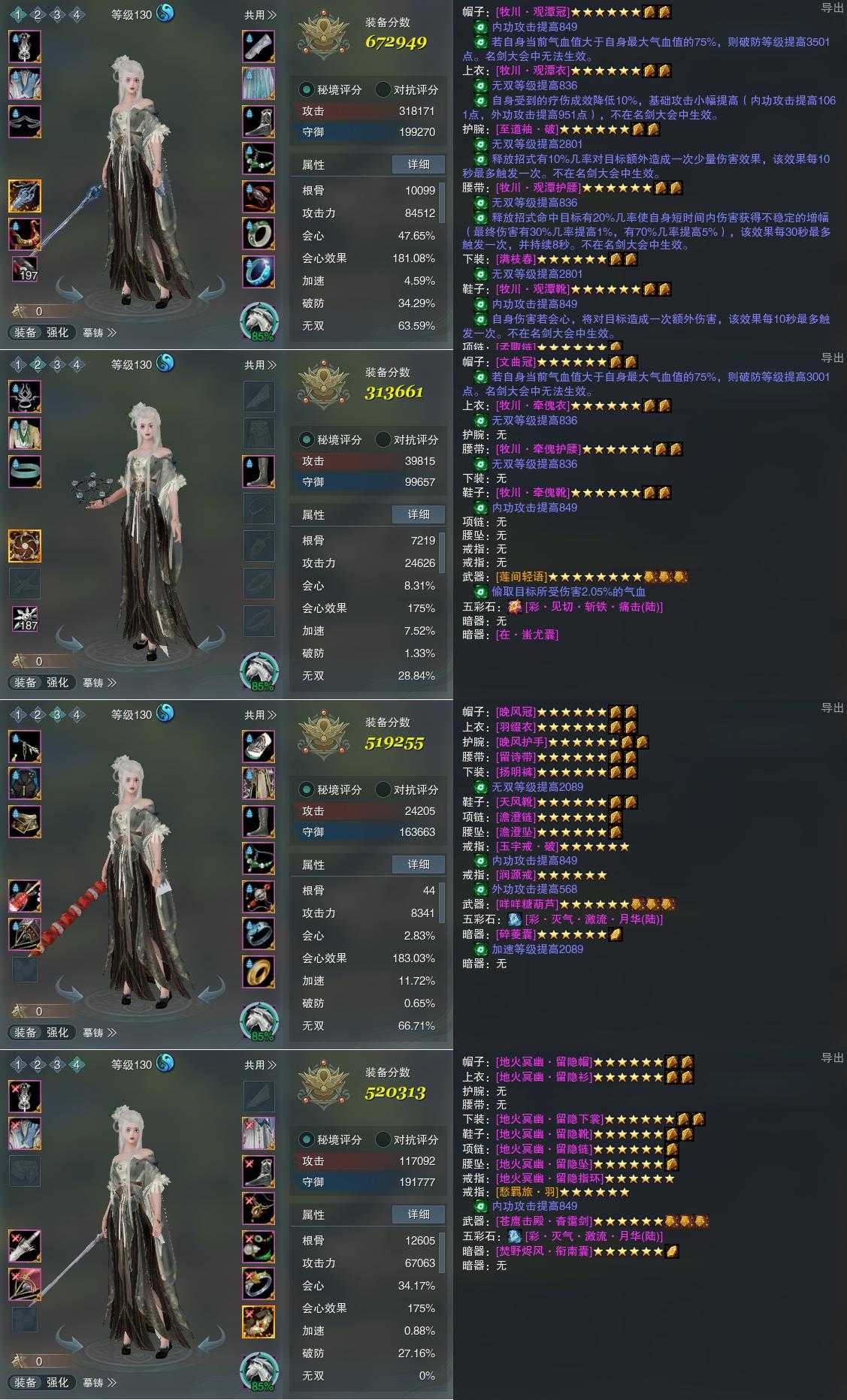 【装备】130级,紫霞功PVE672949,装备二313661,太虚剑意PVE519255,紫霞功PVP520313