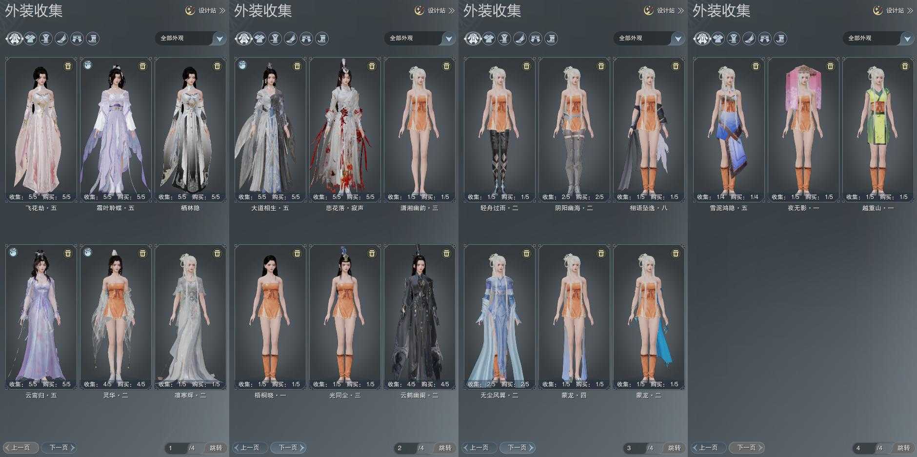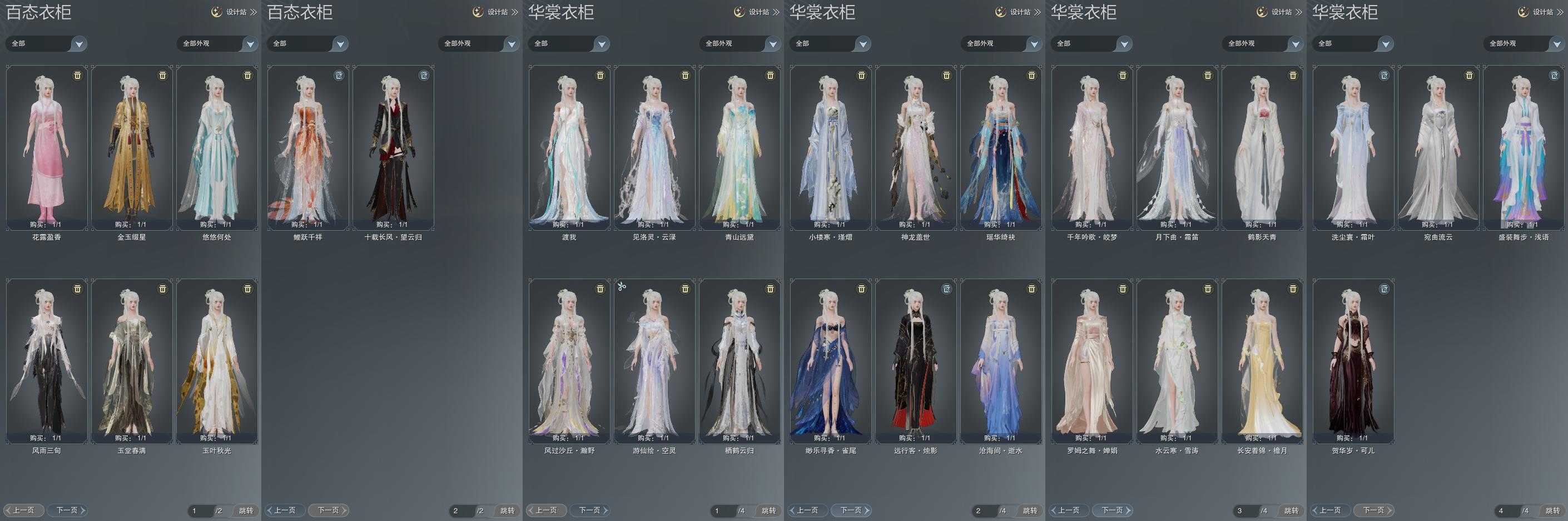 单盒成衣:[二代重阳衣, 红腿盒衣, 青山盒衣, 熊猫盒衣, 蓝洛神衣, 渡我衣, 紫沙丘衣]