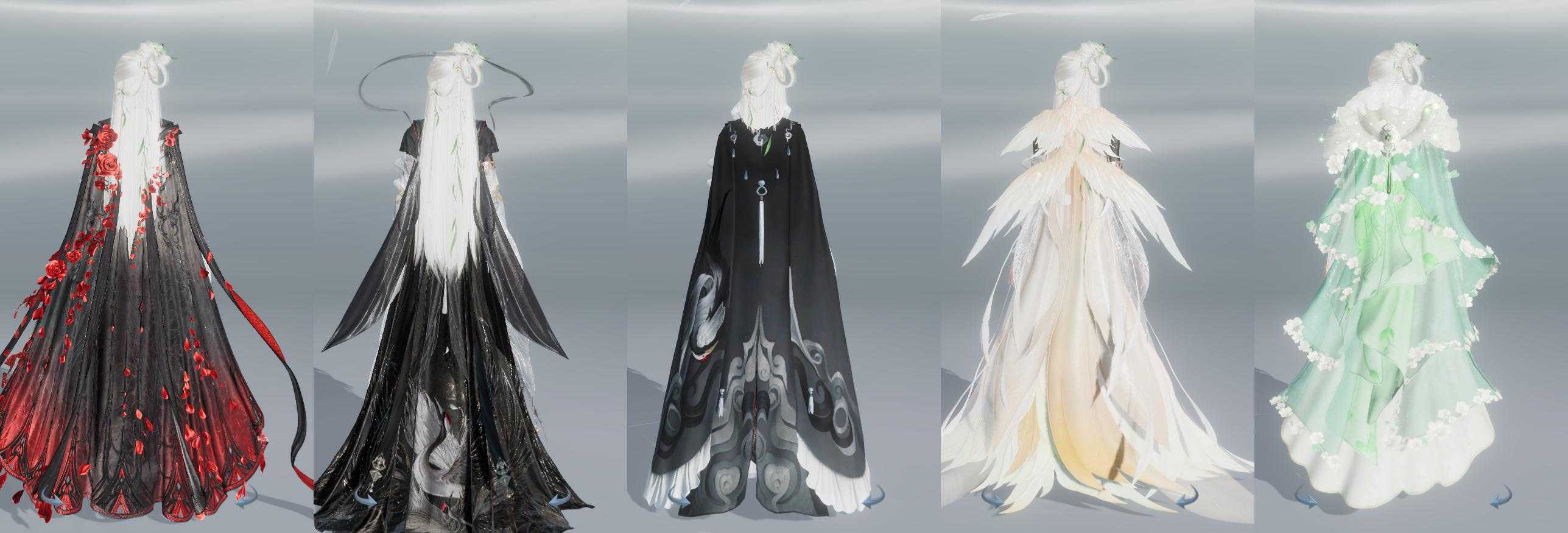 【披风】5个,[青盒子披风, 咩盒披风, 几度春, 白狄仁杰, 赤庭葳蕤]