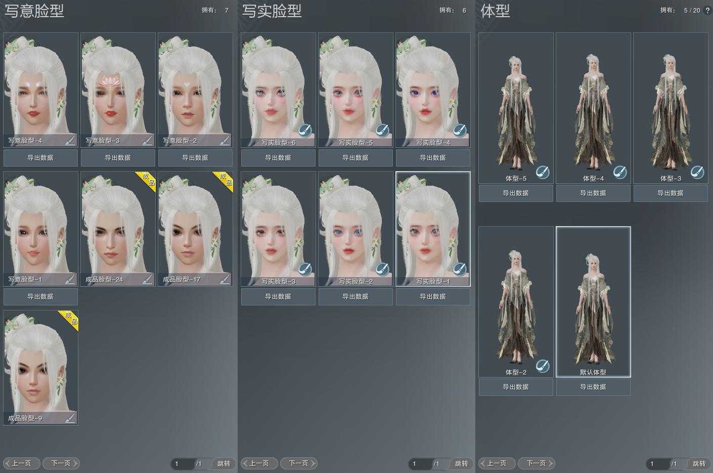 【捏脸】写意脸型7个,写实脸型6个,体型5个