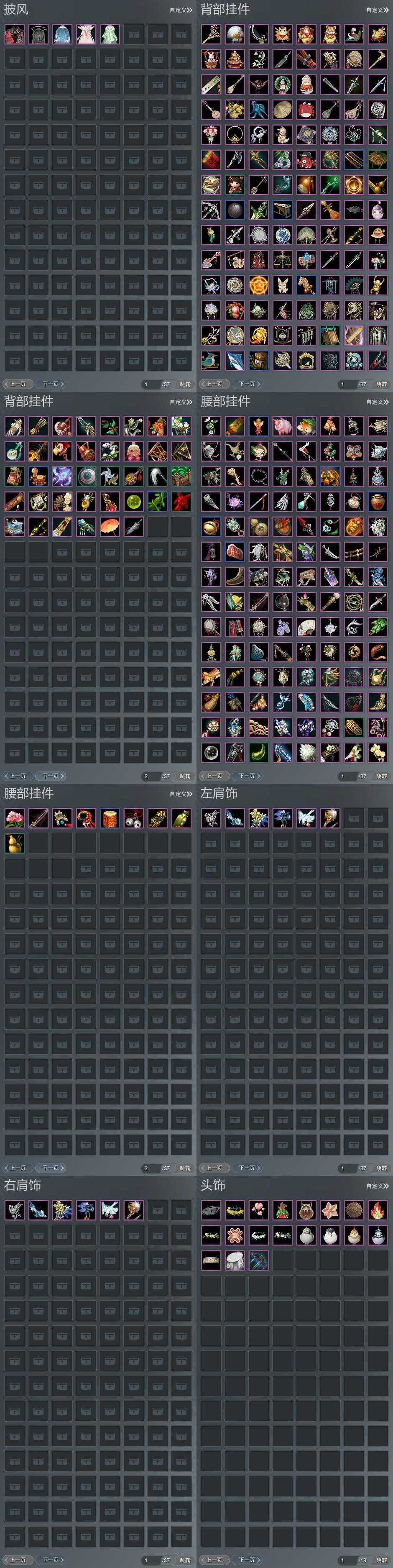 【肩饰】6左,6右,[栖鹤云归·左, 双鱼曳波·极乐·左, 鹤影天青·左][栖鹤云归·右, 鹤影天青·右]