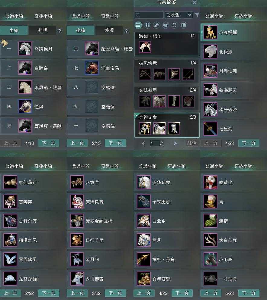 【坐骑】7个[踏炎腾云, 西风瘦逐狱, 乌蹄抱月]