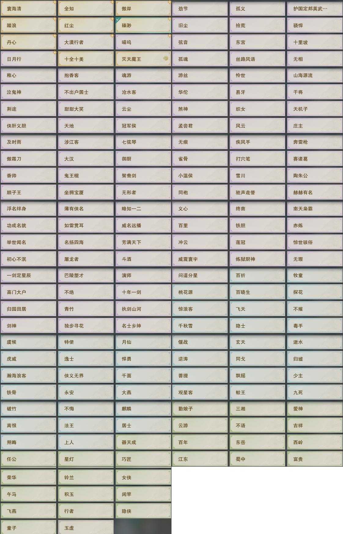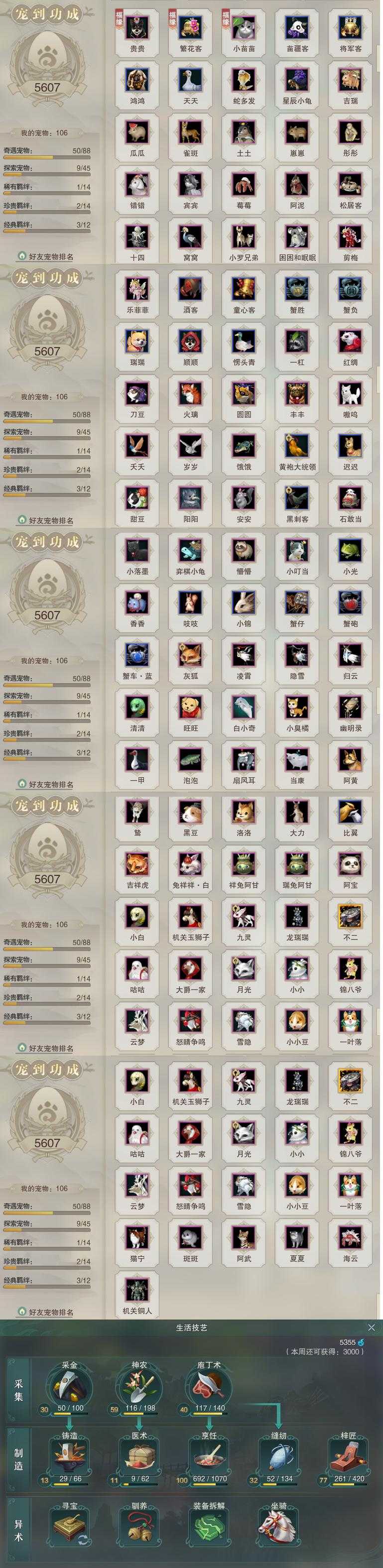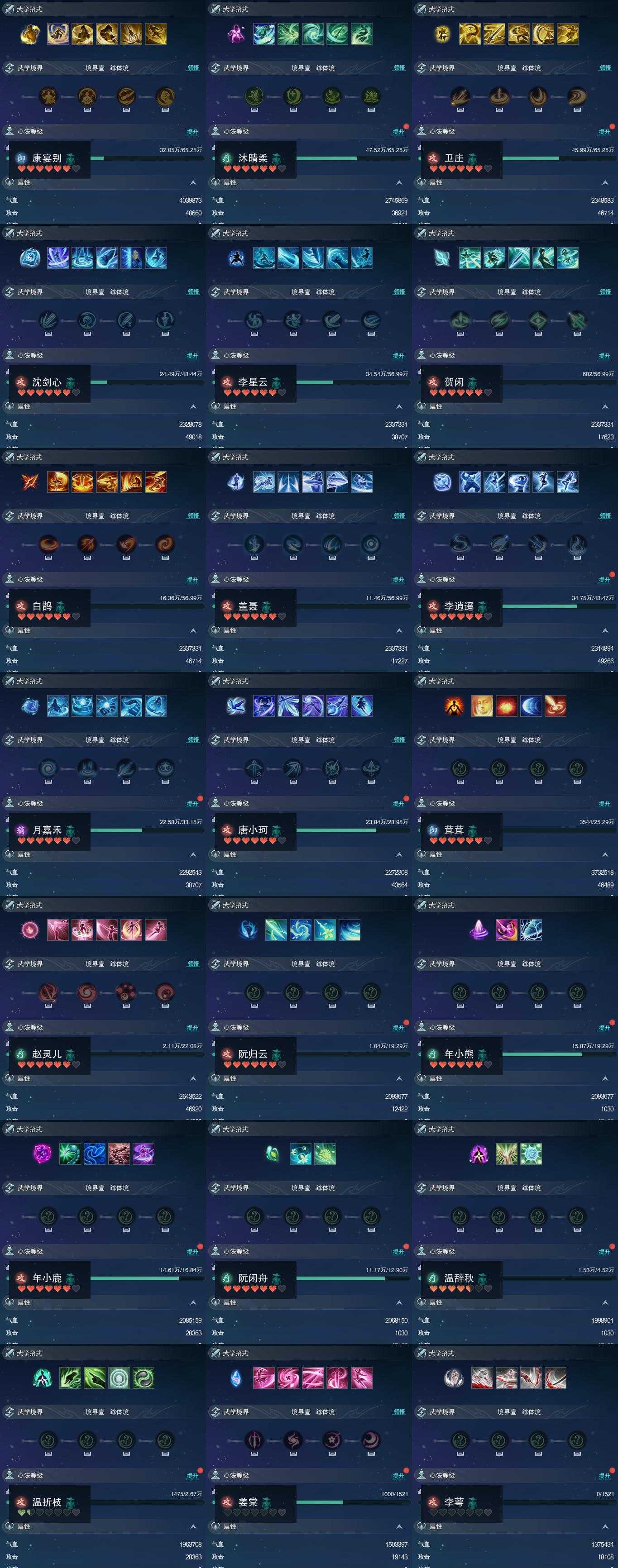 【同伴】康宴别81级境界壹,沐晴柔81级境界壹,卫庄志81级境界壹,沈剑心80级境界壹,李星云80级境界壹,贺闲志80级境界壹,白鹊志80级境界壹,盖聂志80级境界壹,李逍遥78级境界壹,月嘉禾76级境界壹,唐小珂75级境界壹,茸茸志74级境界壹,赵灵儿73级境界壹,阮归云72级境界壹,年小熊72级境界壹,年小鹿71级境界壹,阮闲舟69级境界壹,温辞秋61级境界壹,温折枝57级境界壹,姜棠志1级境界壹,李萼志1级境界壹