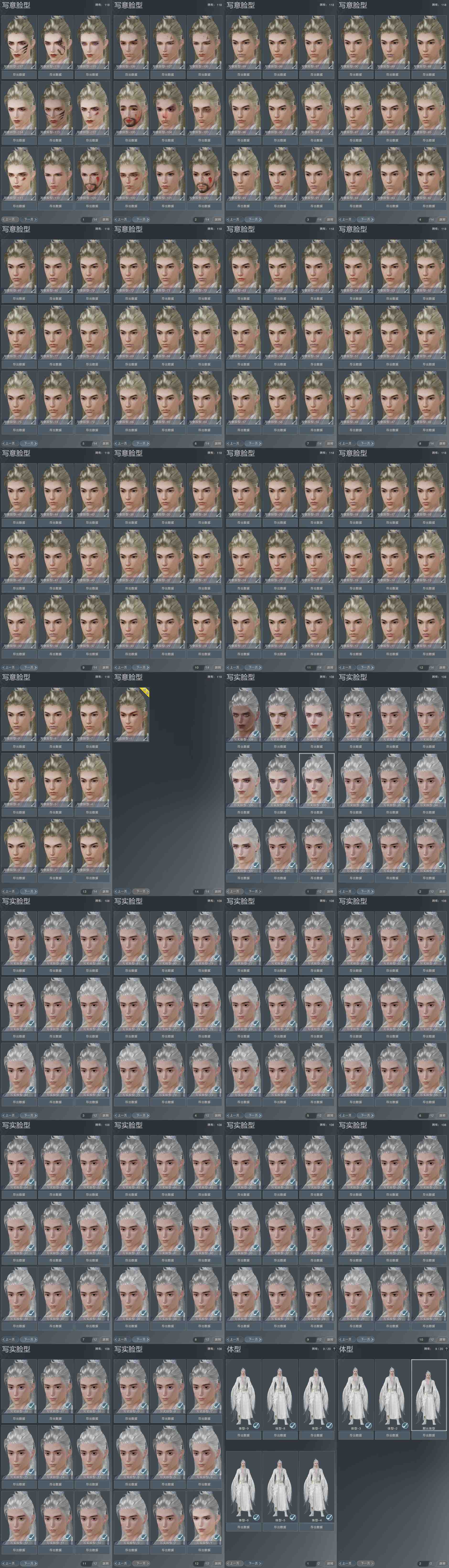 【捏脸】写意脸型118个,写实脸型108个,体型9个