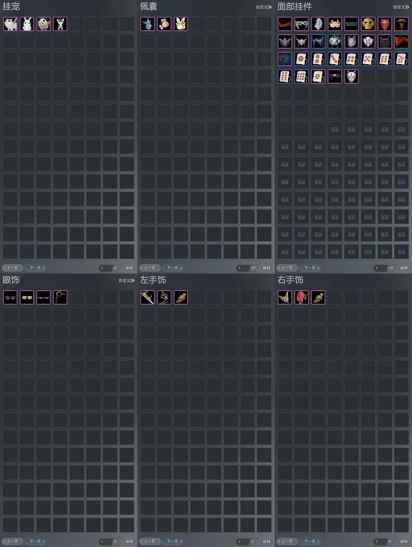 【手饰】3左,3右,[鸮羽肃·左][莫思归·左, 缠枝焰色·左, 鸮羽肃·左]