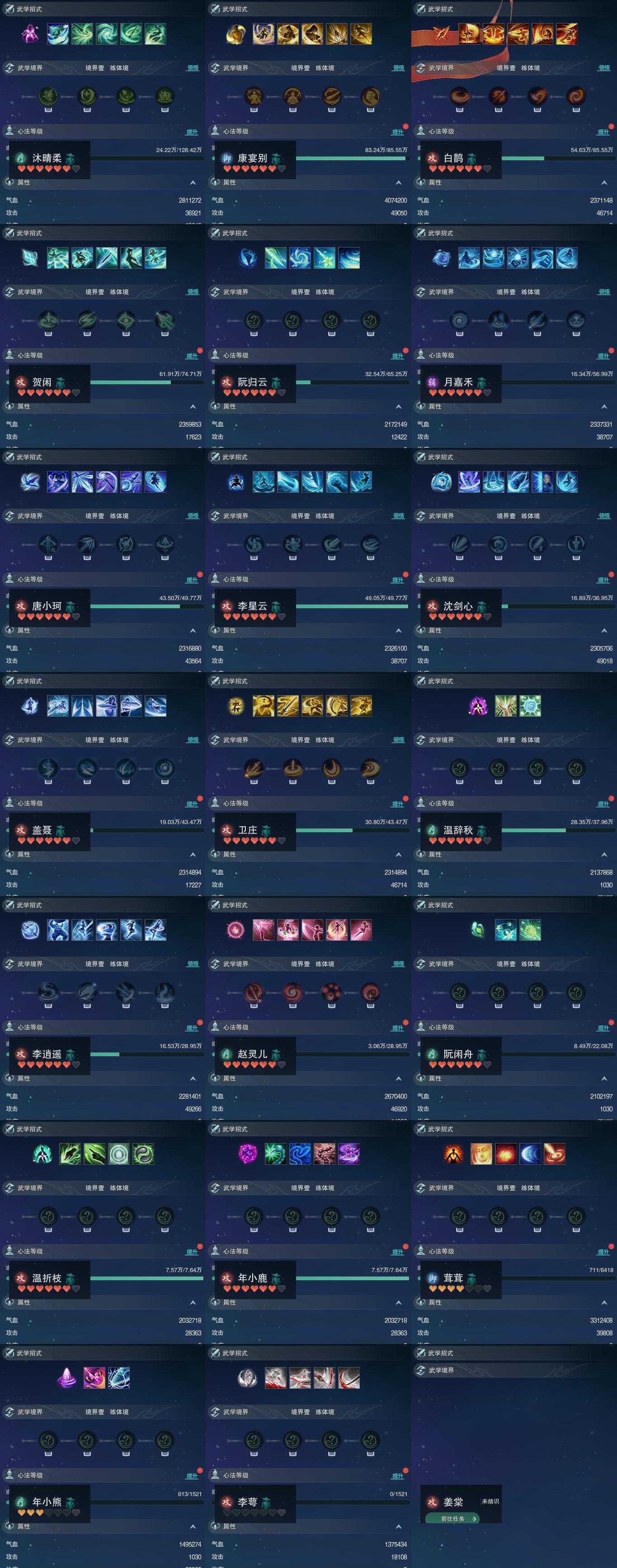 【同伴】沐晴柔86级境界壹,康宴别83级境界壹,白鹊志83级境界壹,贺闲志82级境界壹,阮归云81级境界壹,月嘉禾80级境界壹,唐小珂79级境界壹,李星云79级境界壹,沈剑心78级境界壹,盖聂志78级境界壹,卫庄志78级境界壹,温辞秋77级境界壹,李逍遥75级境界壹,赵灵儿75级境界壹,阮闲舟73级境界壹,温折枝65级境界壹,年小鹿65级境界壹,茸茸志45级境界壹,年小熊1级境界壹,李萼志1级境界壹,姜棠级