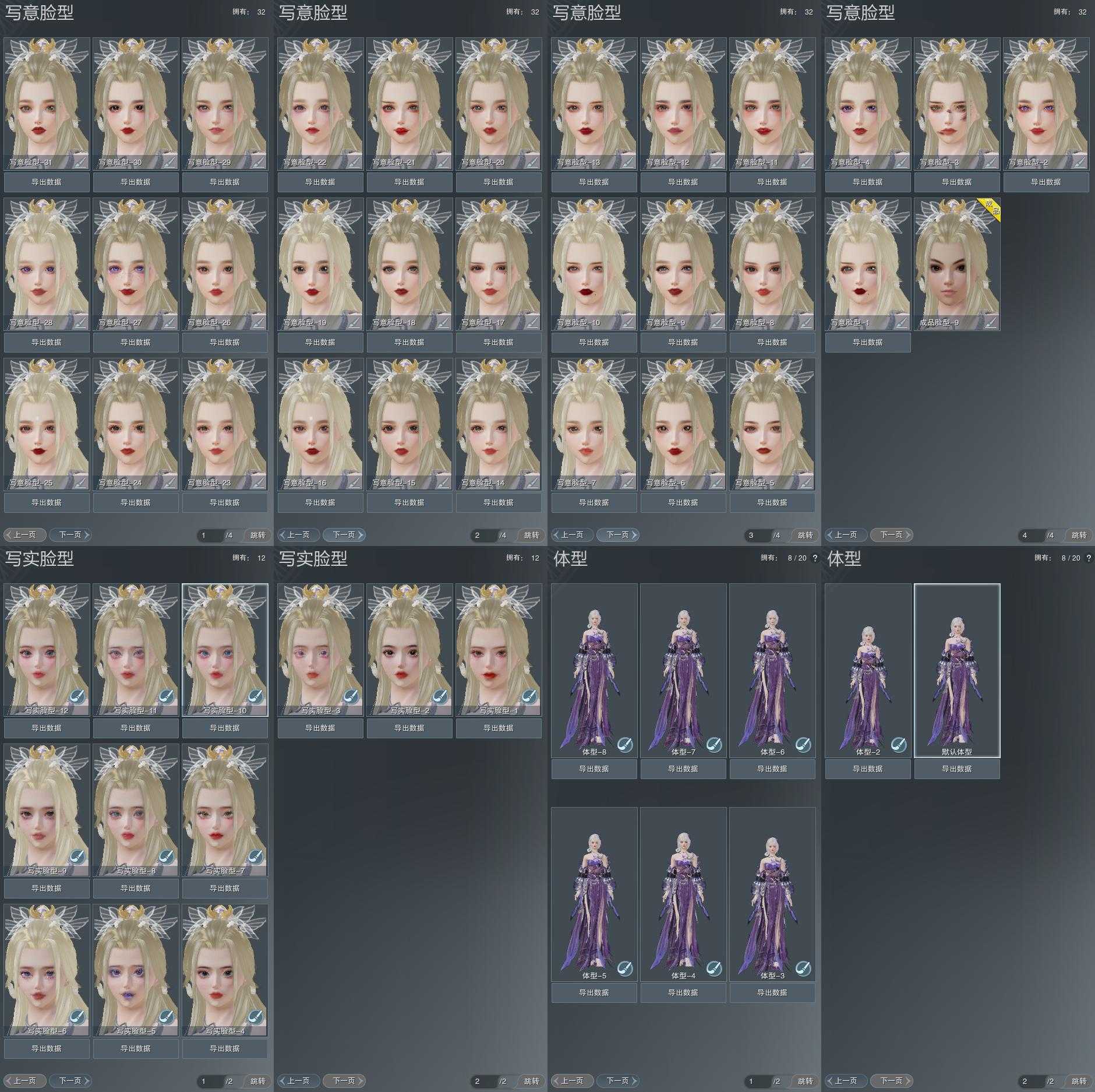 【捏脸】写意脸型32个,写实脸型12个,体型8个