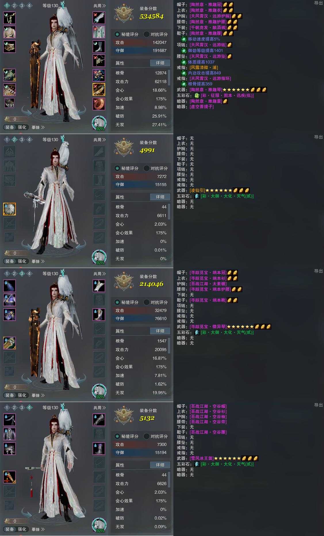 【装备】130级,莫问PVP534584,装备二4991,装备三214046,装备四5132
