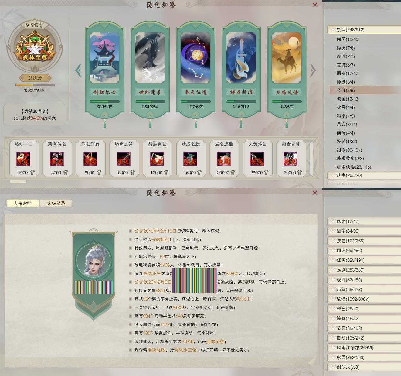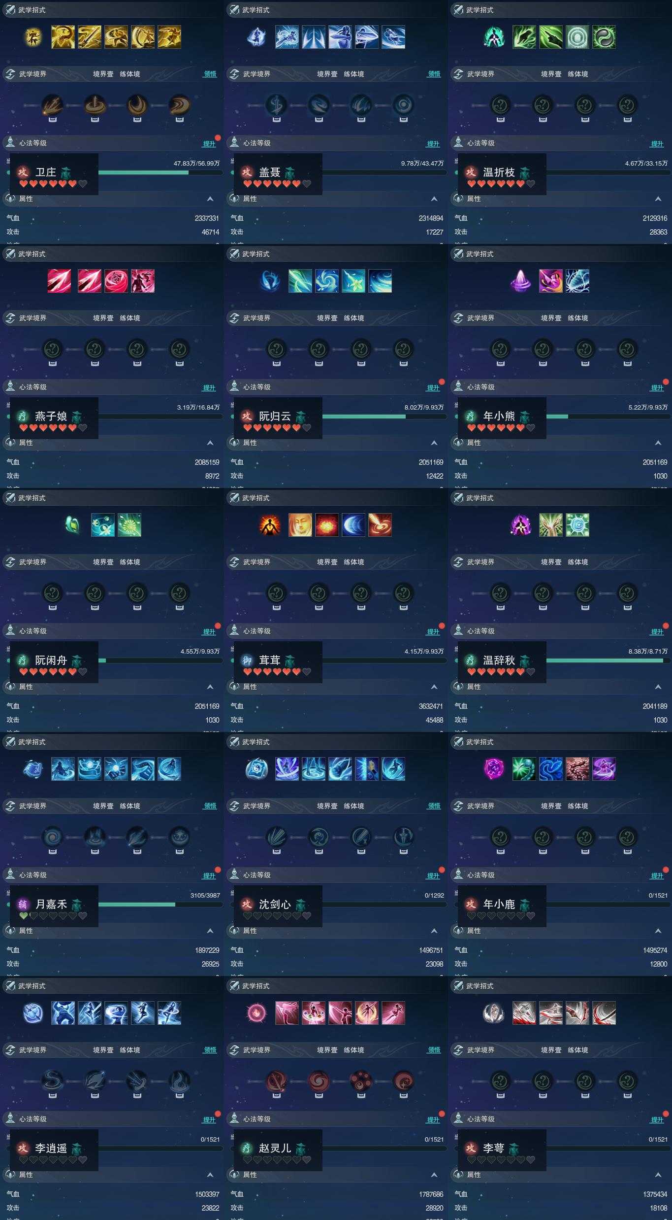 【同伴】卫庄志80级境界壹,盖聂志78级境界壹,温折枝76级境界壹,燕子娘71级境界壹,阮归云67级境界壹,年小熊67级境界壹,阮闲舟67级境界壹,茸茸志67级境界壹,温辞秋66级境界壹,月嘉禾40级境界壹,沈剑心1级境界壹,年小鹿1级境界壹,李逍遥1级境界壹,赵灵儿1级境界壹,李萼志1级境界壹