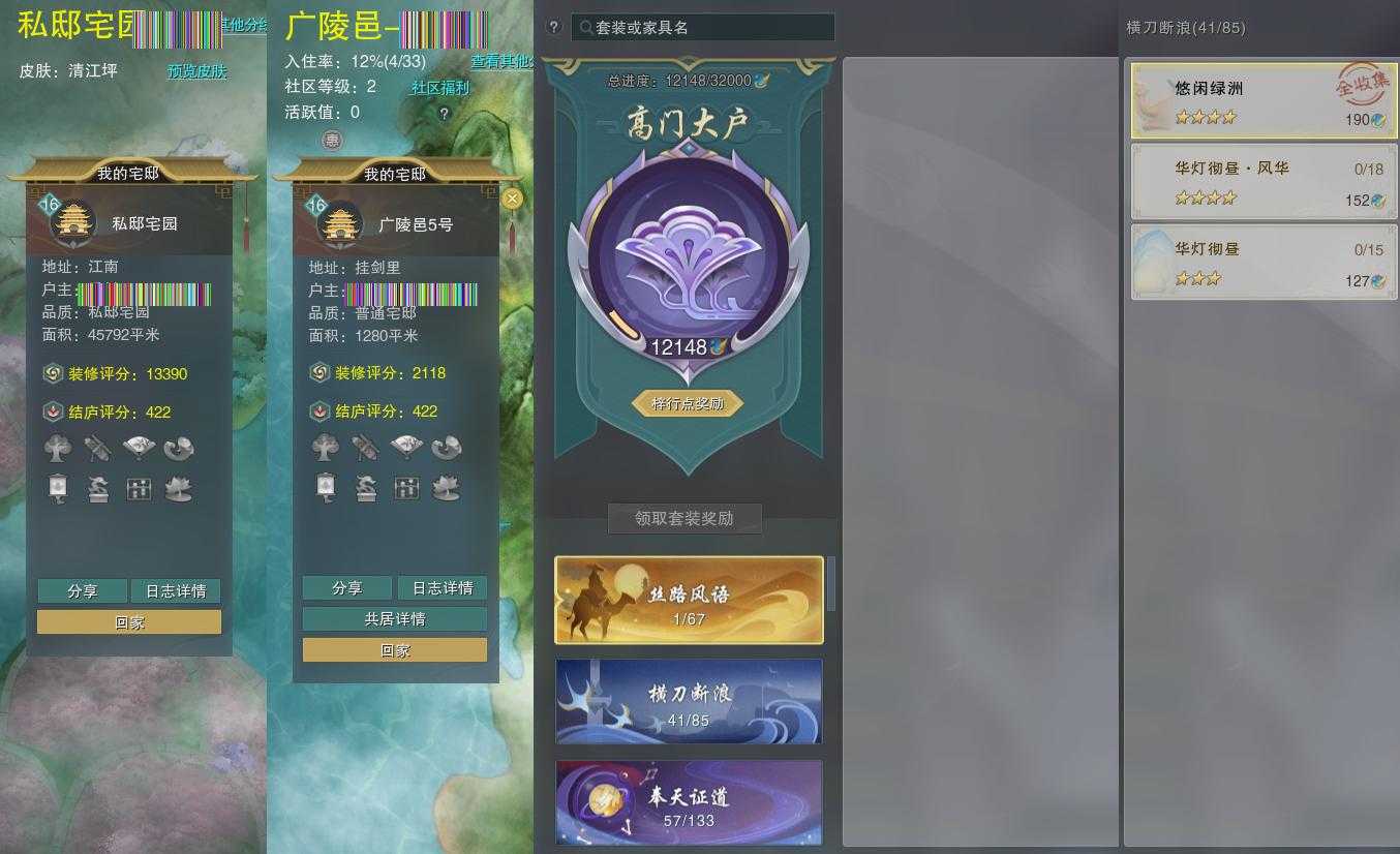 【家园】房屋等级16,社区等级2,私邸宅园,梓行点12148