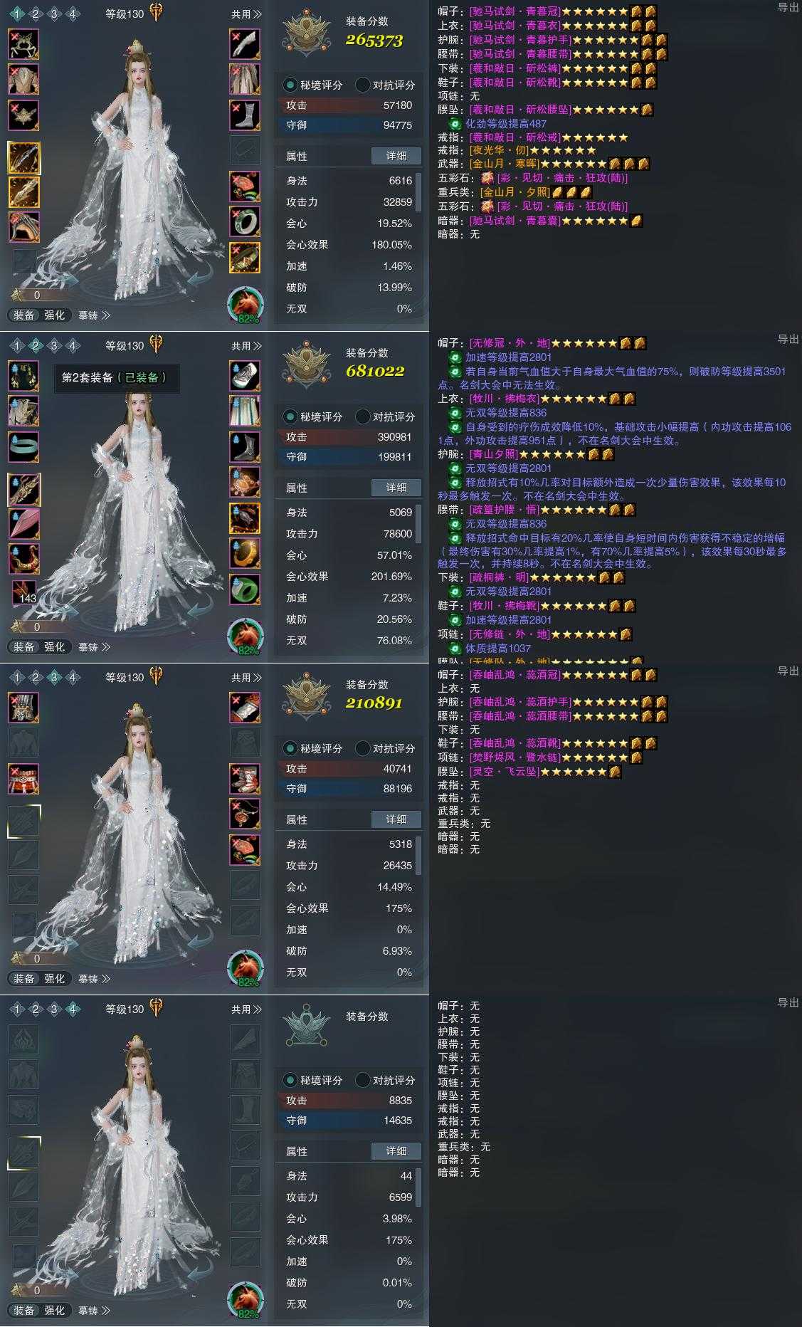 【装备】130级,装备一265373,山居剑意/问水诀PVE681022,装备三210891,装备四0