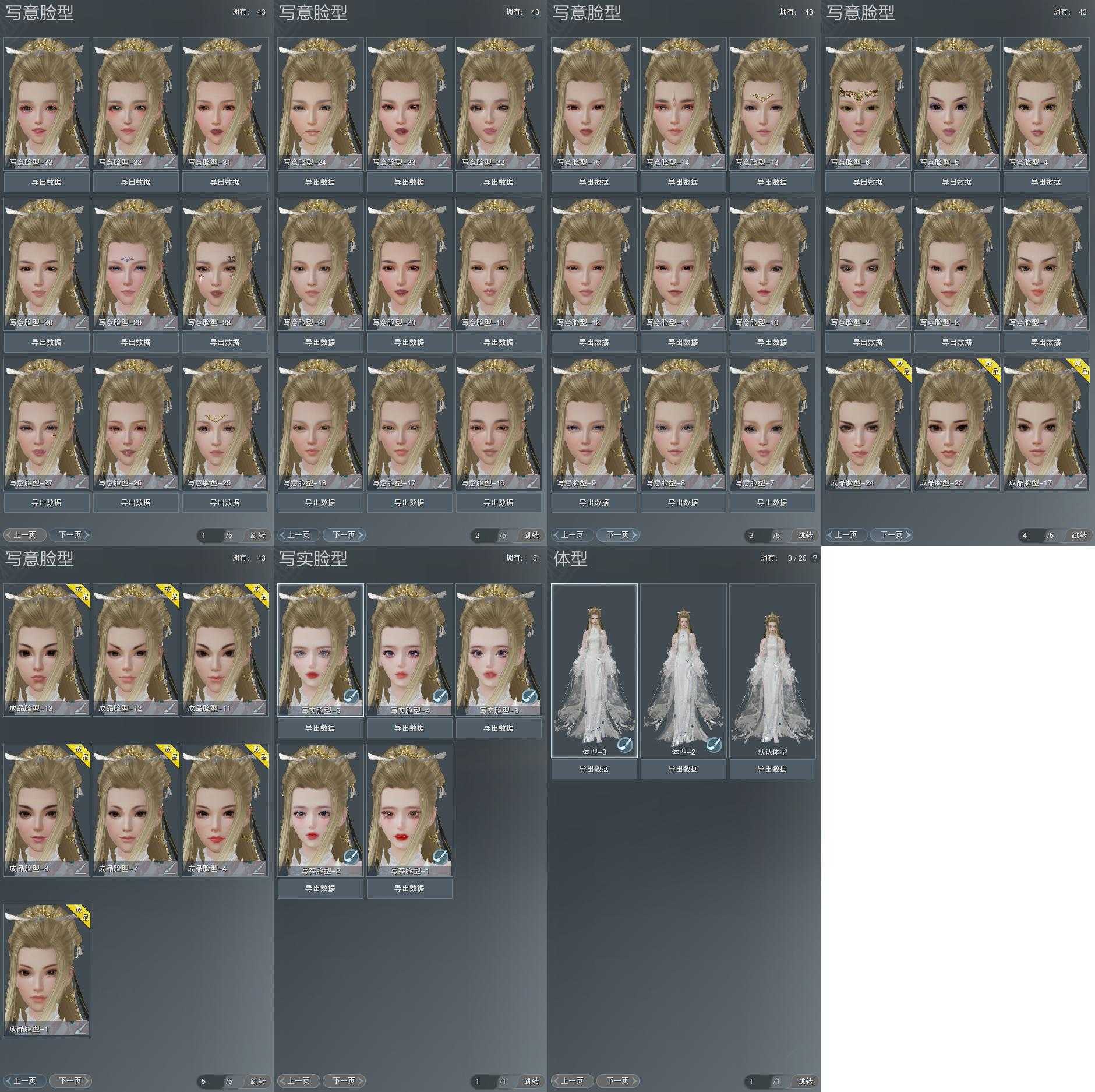 【捏脸】写意脸型43个,写实脸型5个,体型3个