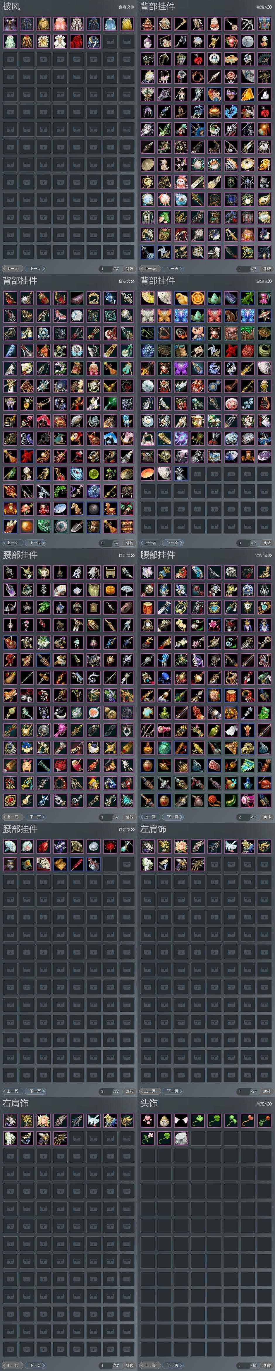 【披风】14个,[7W资历披风, 红盒子披风, 青盒子披风, 唐盒子披风, 白盒子披风, 粉盒子披风, 花盒子披风, 叽盒子披风, 周公御龙, 白莲花, 红酒瓶, 玉树, 枝妆曲, 几度春]
