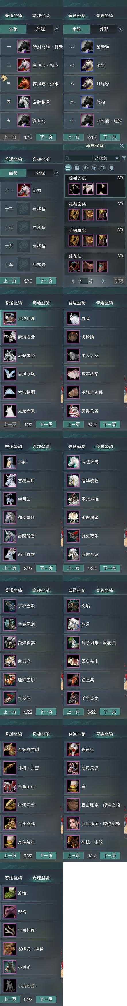 【坐骑】11个[绝尘, 踏炎腾云, 西风瘦烛银, 西风瘦逐狱, 里飞沙初心, 乌蹄抱月]