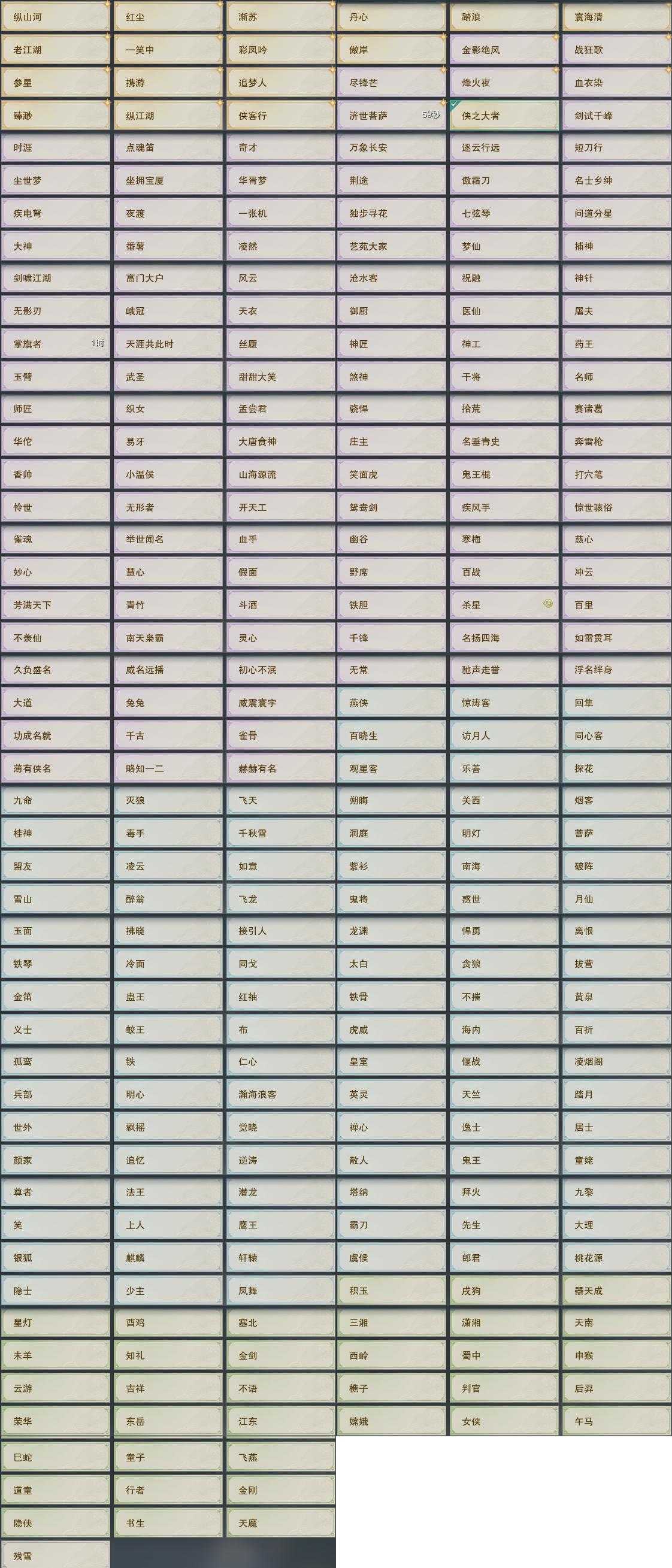 【称号】[济世菩萨, 尽锋芒, 纵江湖]
