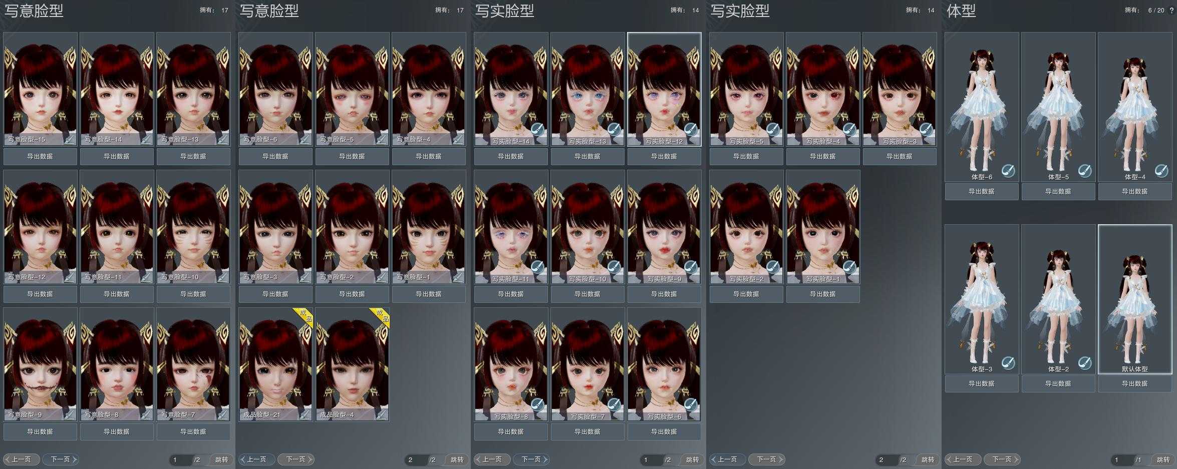【捏脸】写意脸型17个,写实脸型14个,体型6个