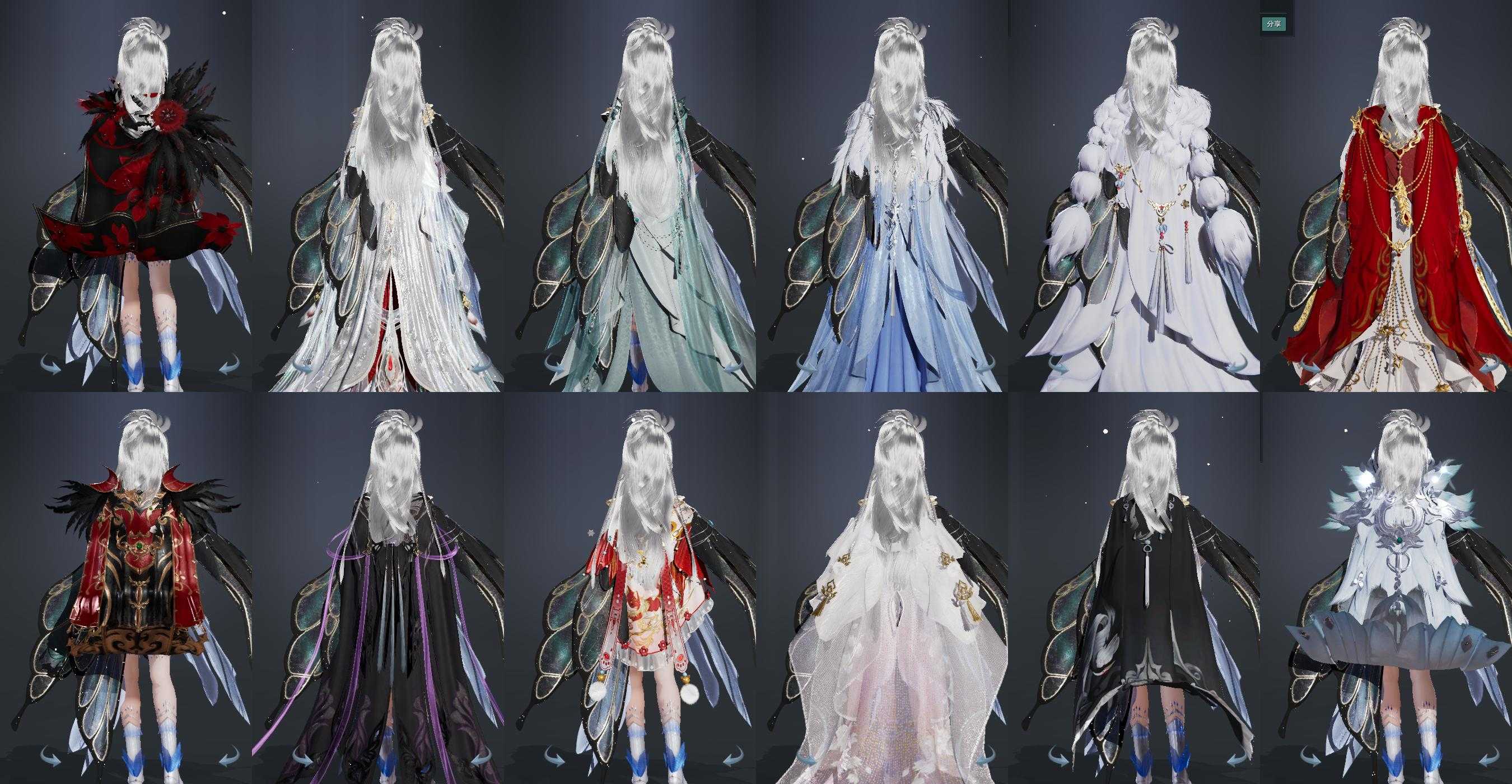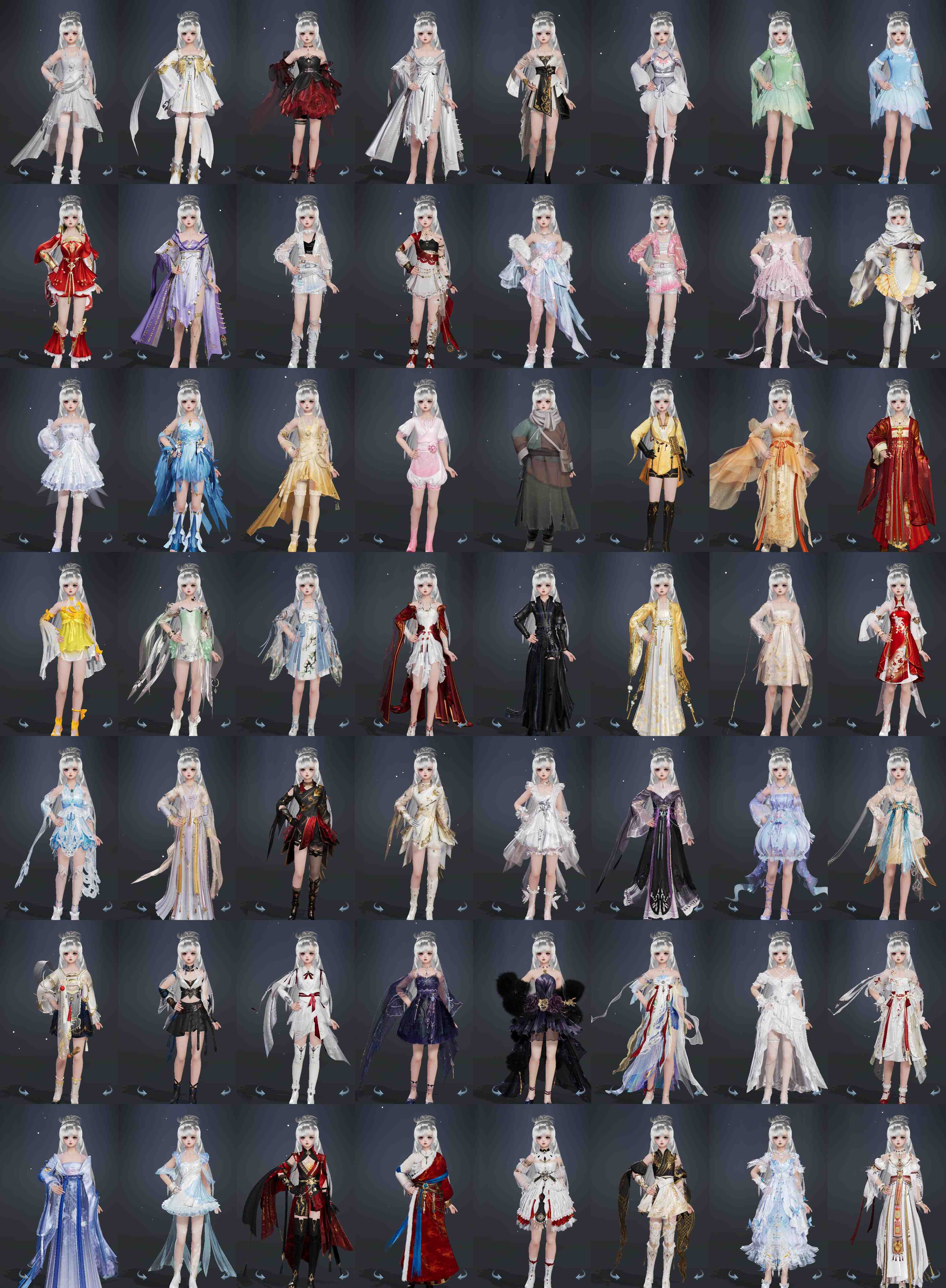 复刻:[黑潇湘, 银罗姆, 复刻黑玫瑰, 白机车, 瑶池戏月安驻, 粉蓝机车, 天选粉无粉, 蓝二公主, 夜斩白暮长, 沧海间垂虹, 尽奏折笺, 龙鸾舞千花, 五期福袋成衣, 折花留芳坠绯]