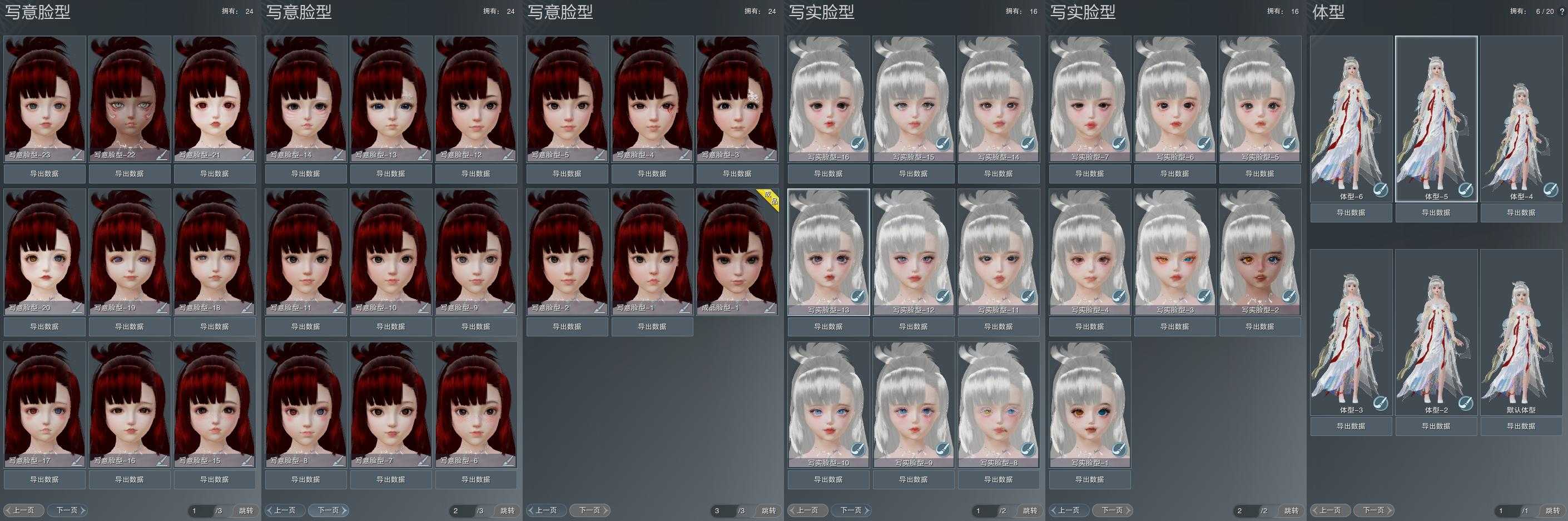 【捏脸】写意脸型24个,写实脸型16个,体型6个