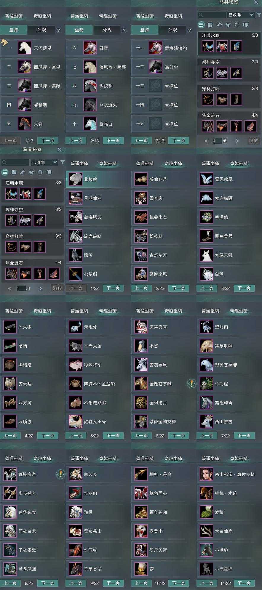 【坐骑】12个[西风瘦逐狱, 西风瘦追星, 小樱马, 霸红尘]