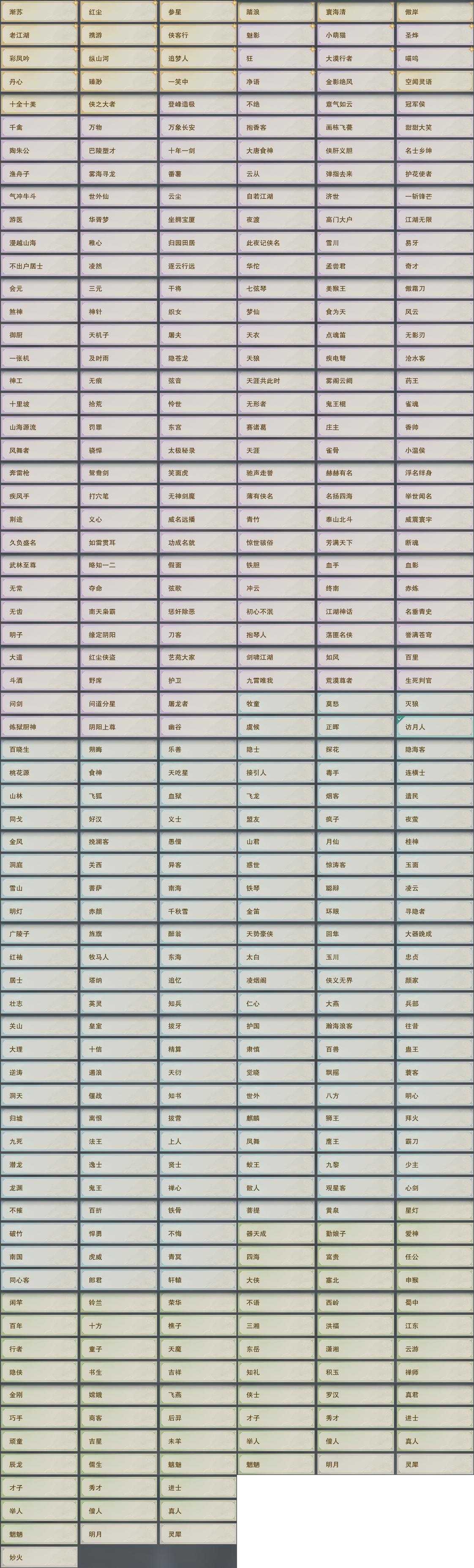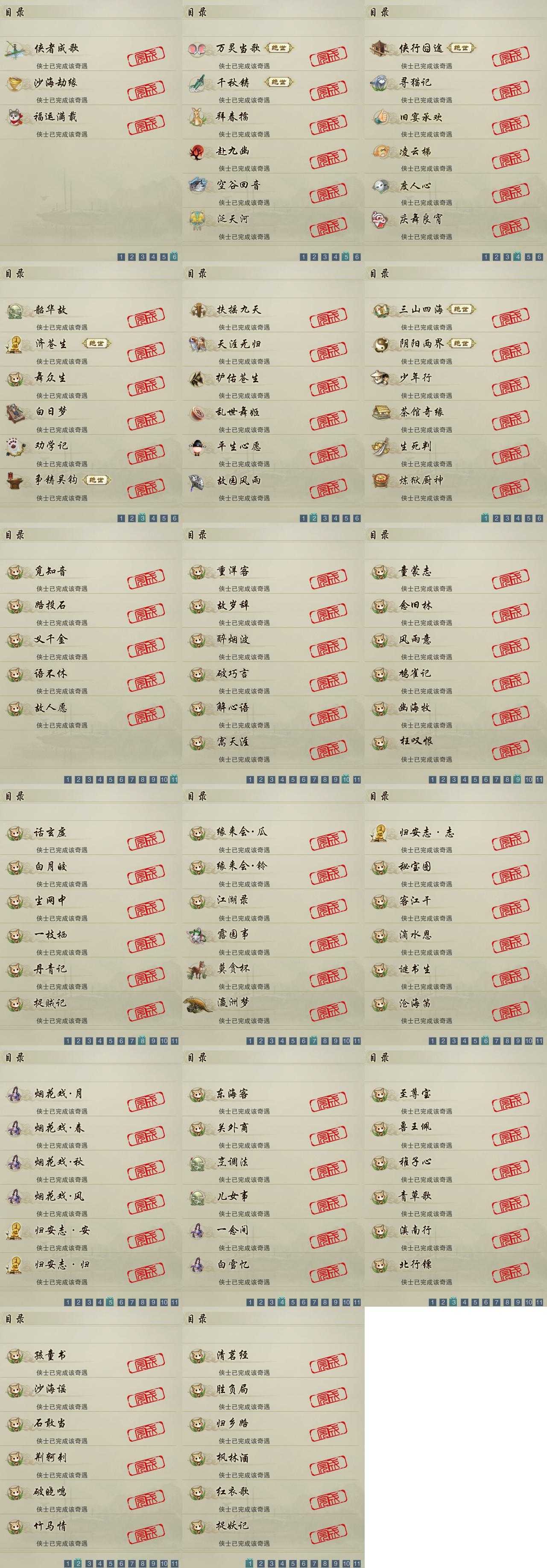 【奇遇】33个[白日梦, 天涯无归, 三山四海, 劝学记, 阴阳两界, 平生心愿, 乱世舞姬, 韶华故, 争铸吴钩, 济苍生, 护佑苍生, 少年行, 扶摇九天, 故园风雨, 舞众生, 侠行囧途, 寻猫记, 茶馆奇缘, 万灵当歌, 庆舞良宵, 生死判, 千秋铸, 凌云梯, 炼狱厨神, 赴九幽, 度人心, 空谷回音, 旧宴承欢, 泛天河, 侠者成歌]