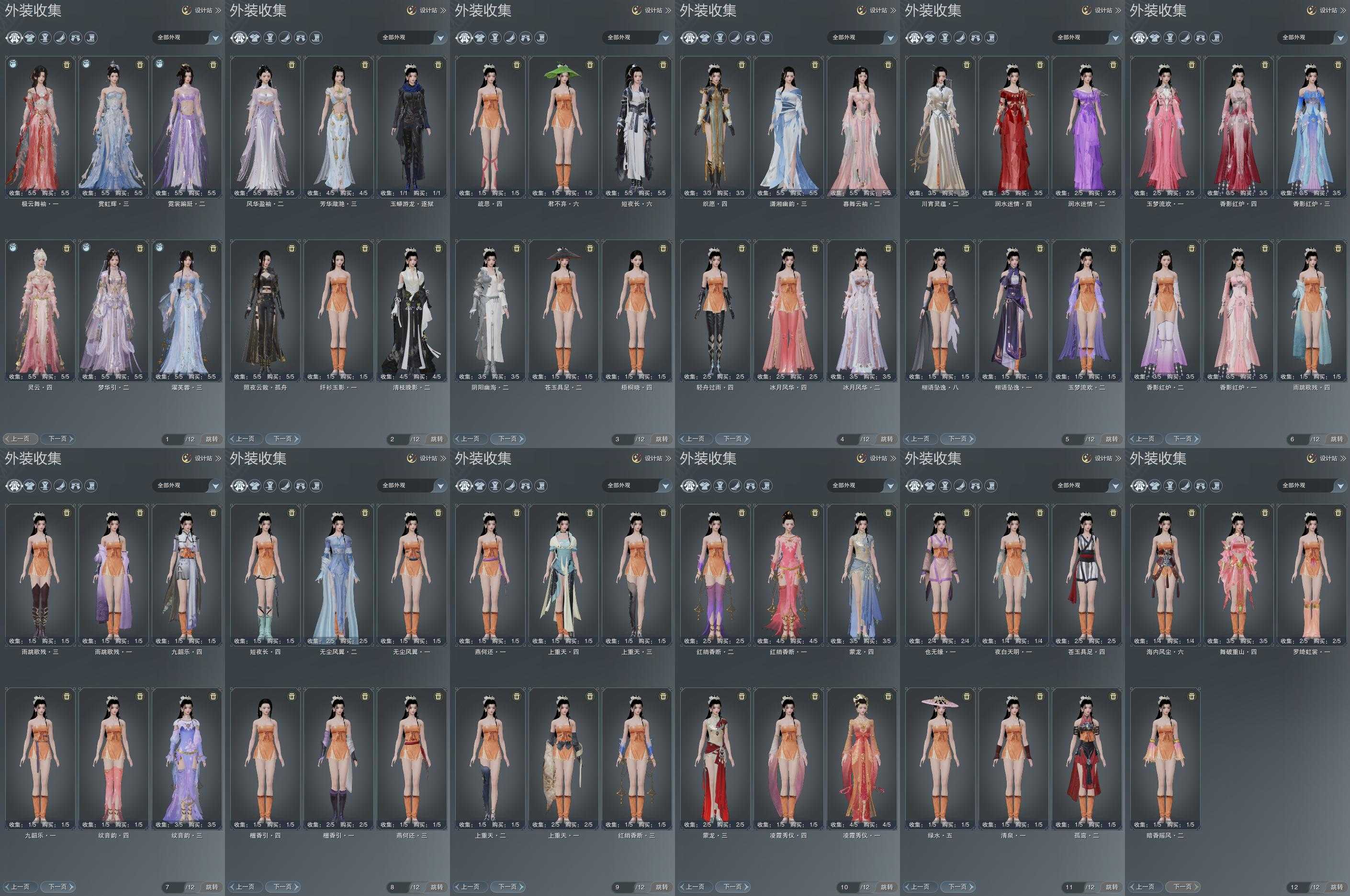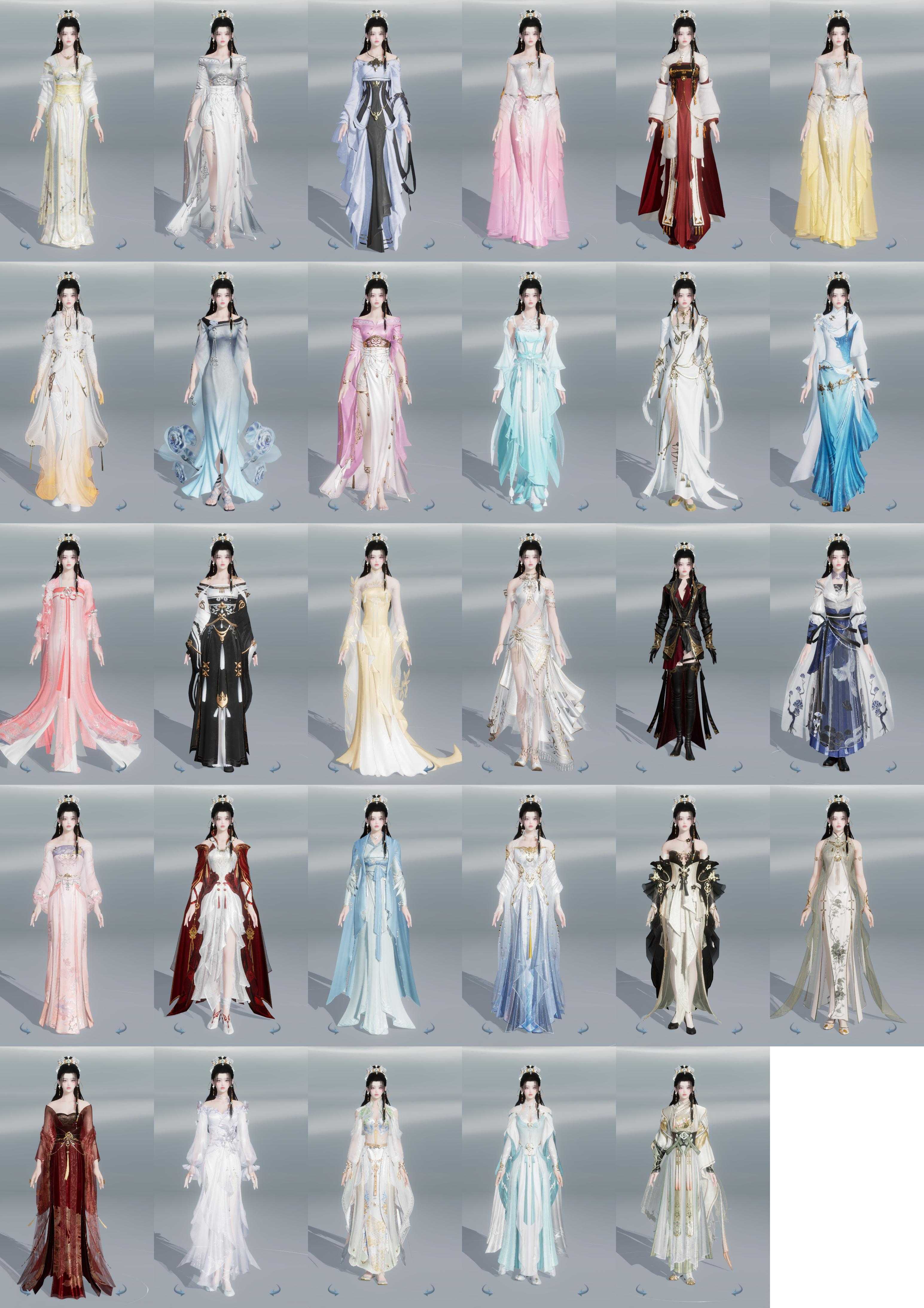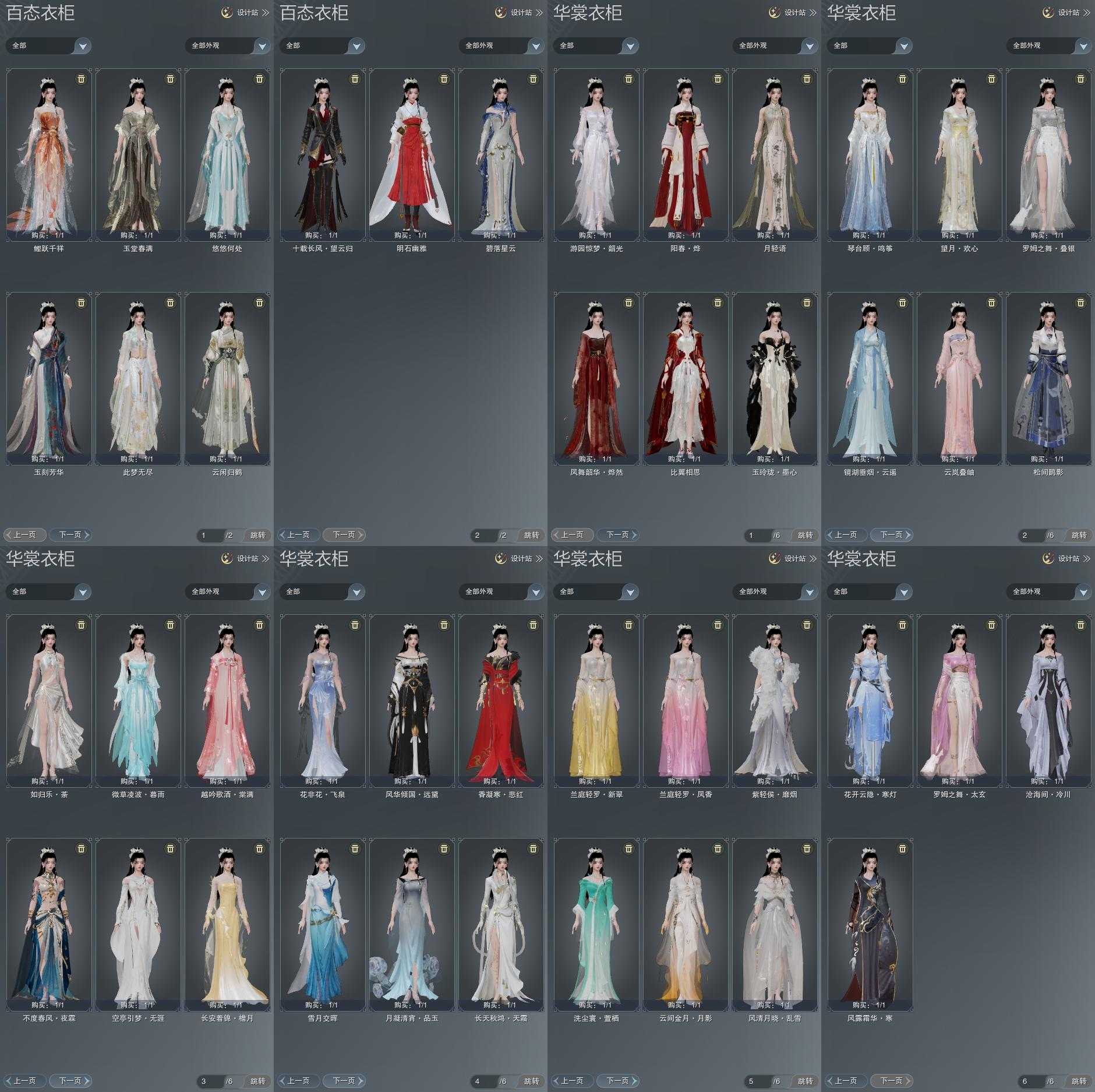 单盒成衣:[四代中秋粉衣, 白如归衣, 同人盒衣, 云岚衣, 五七盒衣, 黑玲珑衣, 旗袍衣, 白游园衣]