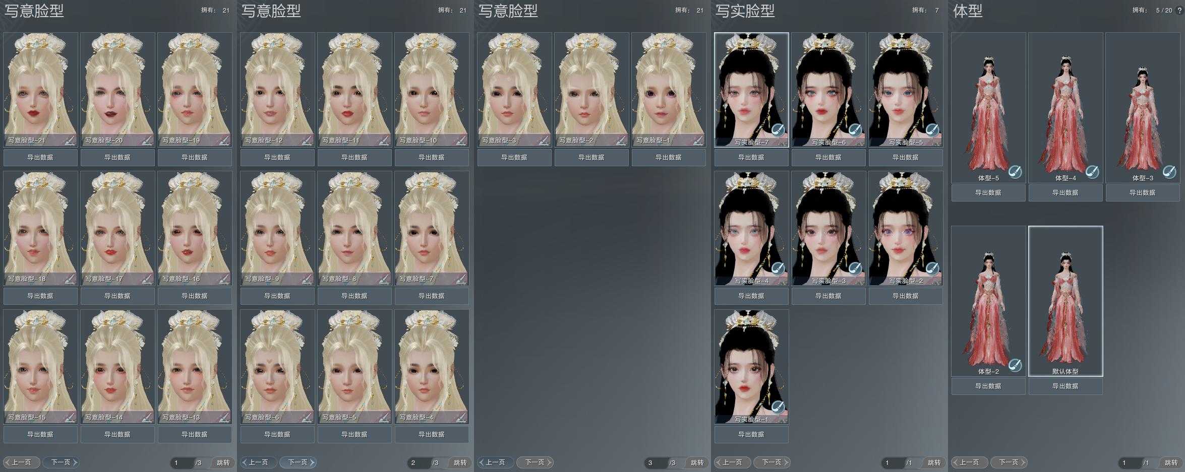 【捏脸】写意脸型21个,写实脸型7个,体型5个
