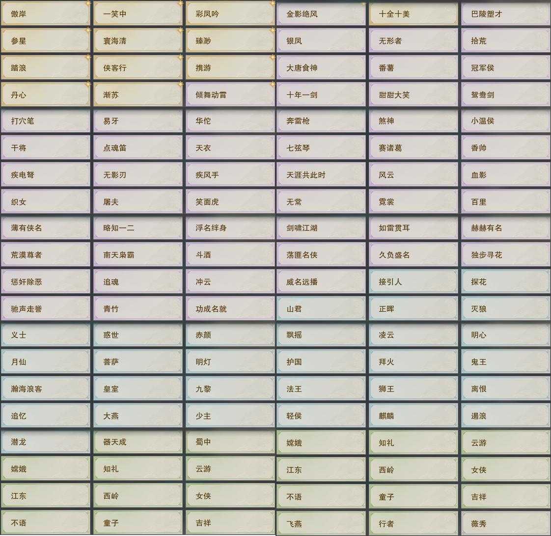 限时限量:[兰庭凤香, 兰庭新翠, 白玫瑰, 微草暮雨, 白长天, 黄长安, 烟花套, 镜湖云遥, 琴台顾鸣筝, 十三周年成衣, 十四周年工作服, 云闲归鹤]