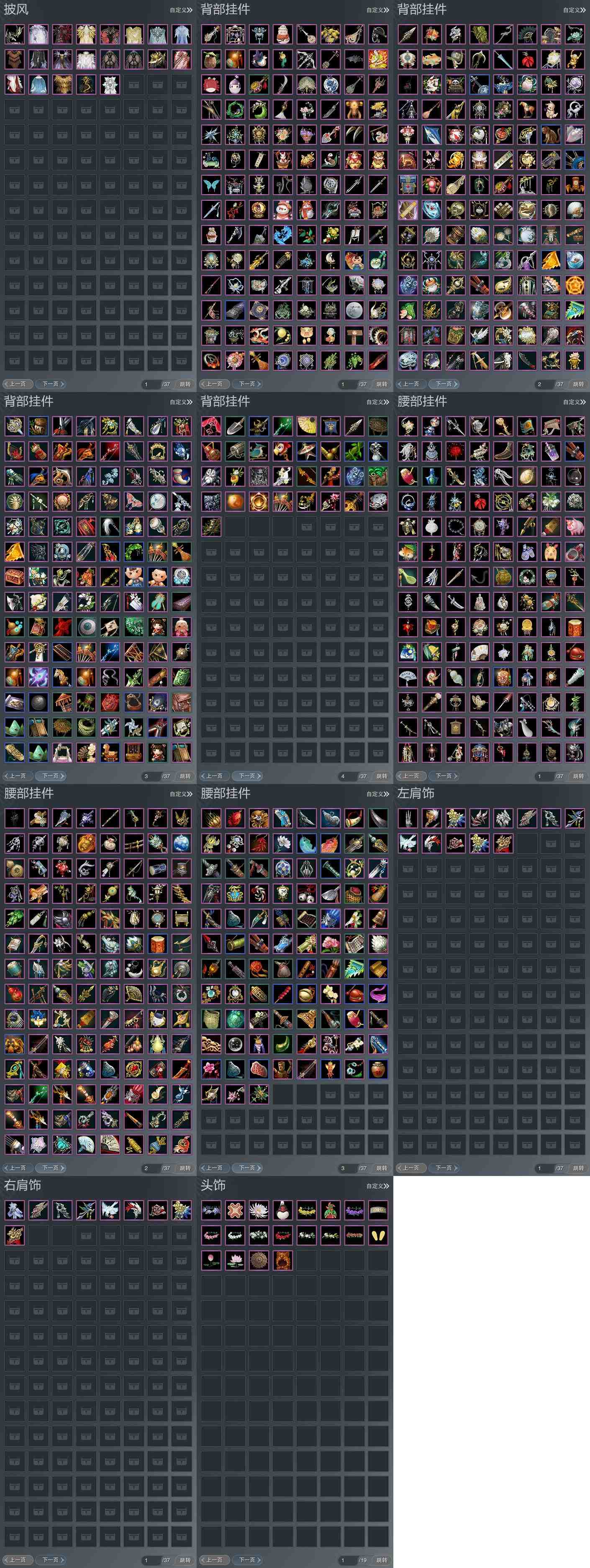 【披风】21个,[7W资历披风, 一代恶人, 14W资历披风, 战服恶人, 青盒子披风, 三山披风, 奇遇披风, 狼头, 苍二盒披风, 羽毛, 龙头, 白狐裘, 空山闲雪, 云麒赫奕, 繁华金语, 赤庭葳蕤]
