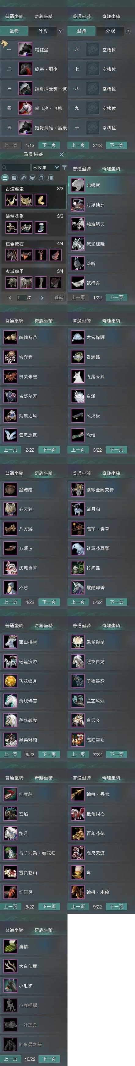 【坐骑】5个[踏炎霸地, 翻羽抹云驹惊华, 里飞沙飞柳, 骁将骊少, 霸红尘]
