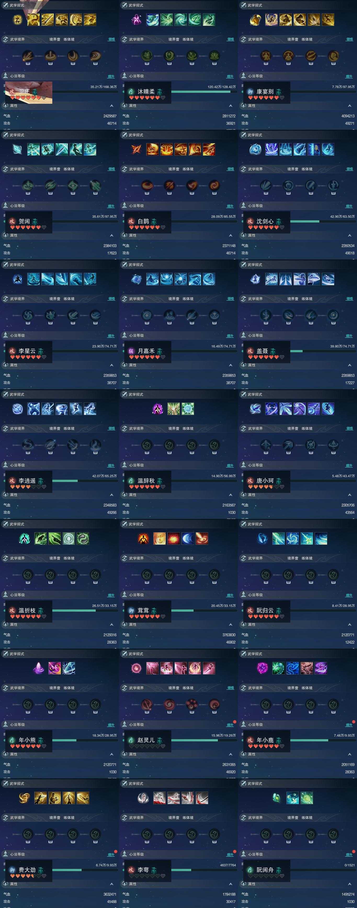 【同伴】卫庄志88级境界壹,沐晴柔86级境界壹,康宴别84级境界壹,贺闲志84级境界壹,白鹊志83级境界壹,沈剑心82级境界壹,李星云82级境界壹,月嘉禾82级境界壹,盖聂志82级境界壹,李逍遥81级境界壹,温辞秋80级境界壹,唐小珂78级境界壹,温折枝76级境界壹,茸茸志76级境界壹,阮归云75级境界壹,年小熊75级境界壹,赵灵儿72级境界壹,年小鹿67级境界壹,费大劲67级境界壹,李萼志47级境界壹,阮闲舟1级境界壹