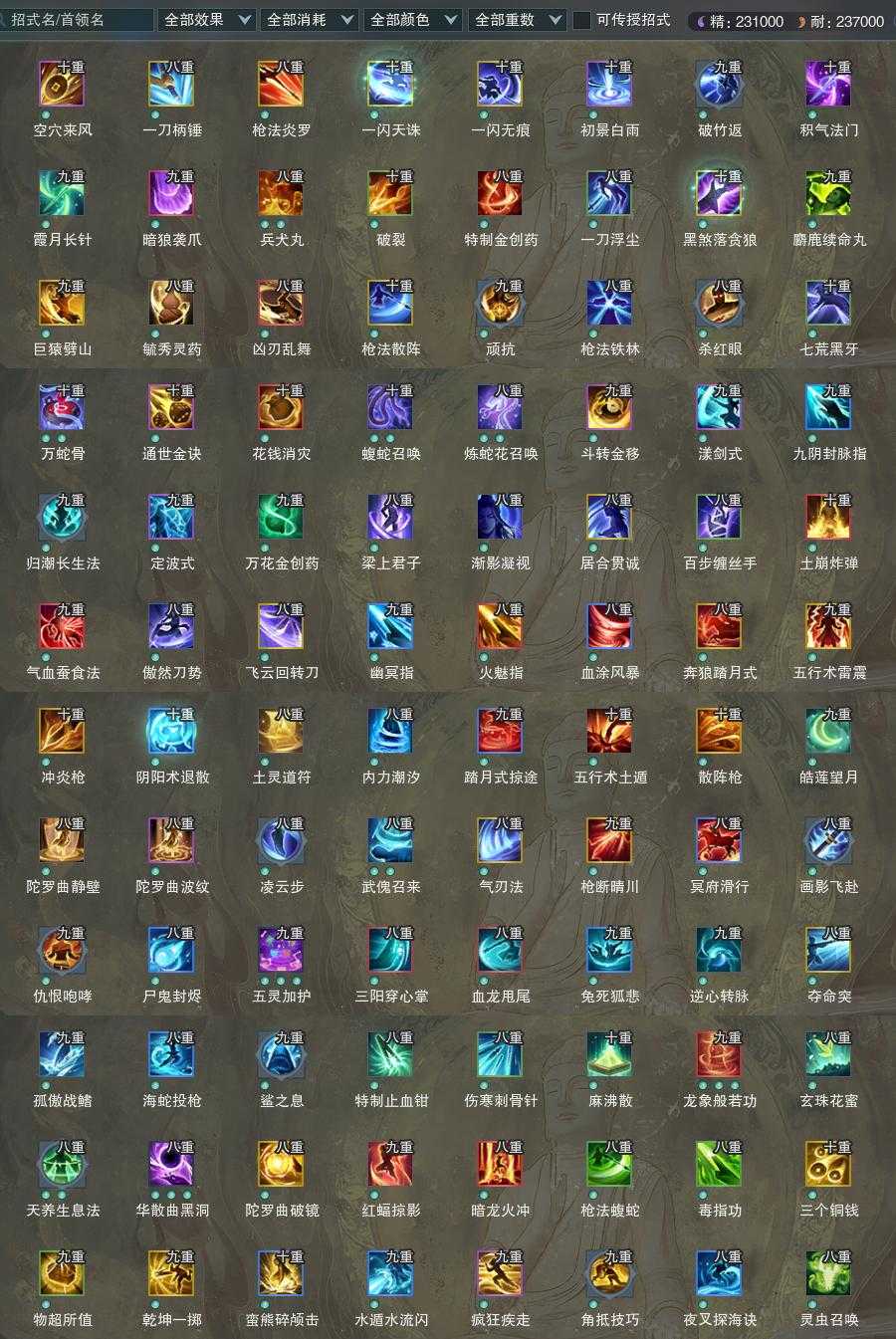 【橙武】(仅本门派)[120玄晶陨铁*1, 120小铁*461, 130小铁*200, 奇遇书照影*1, 90玄晶*1, 70玄晶*1, 110小铁*200, 100小铁*216, 95小铁*256, 90小铁*246, 80小铁*617, 70小铁*342, 110CW岩鳞, 80CW碎魂, 70CW焚海, 门派特效炎枪重黎]