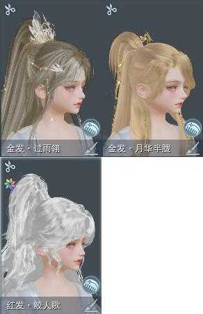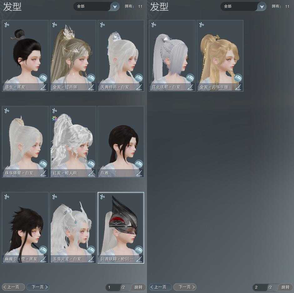 【发型】金发2个[鸡金, 翎金], 红发1个[十五红], 黑发3个, 白发5个, 盒子发型[红黑妖眸盒白发, 灵龙白发, 白幽馥黑发, 瓷盒白发], 总页数2