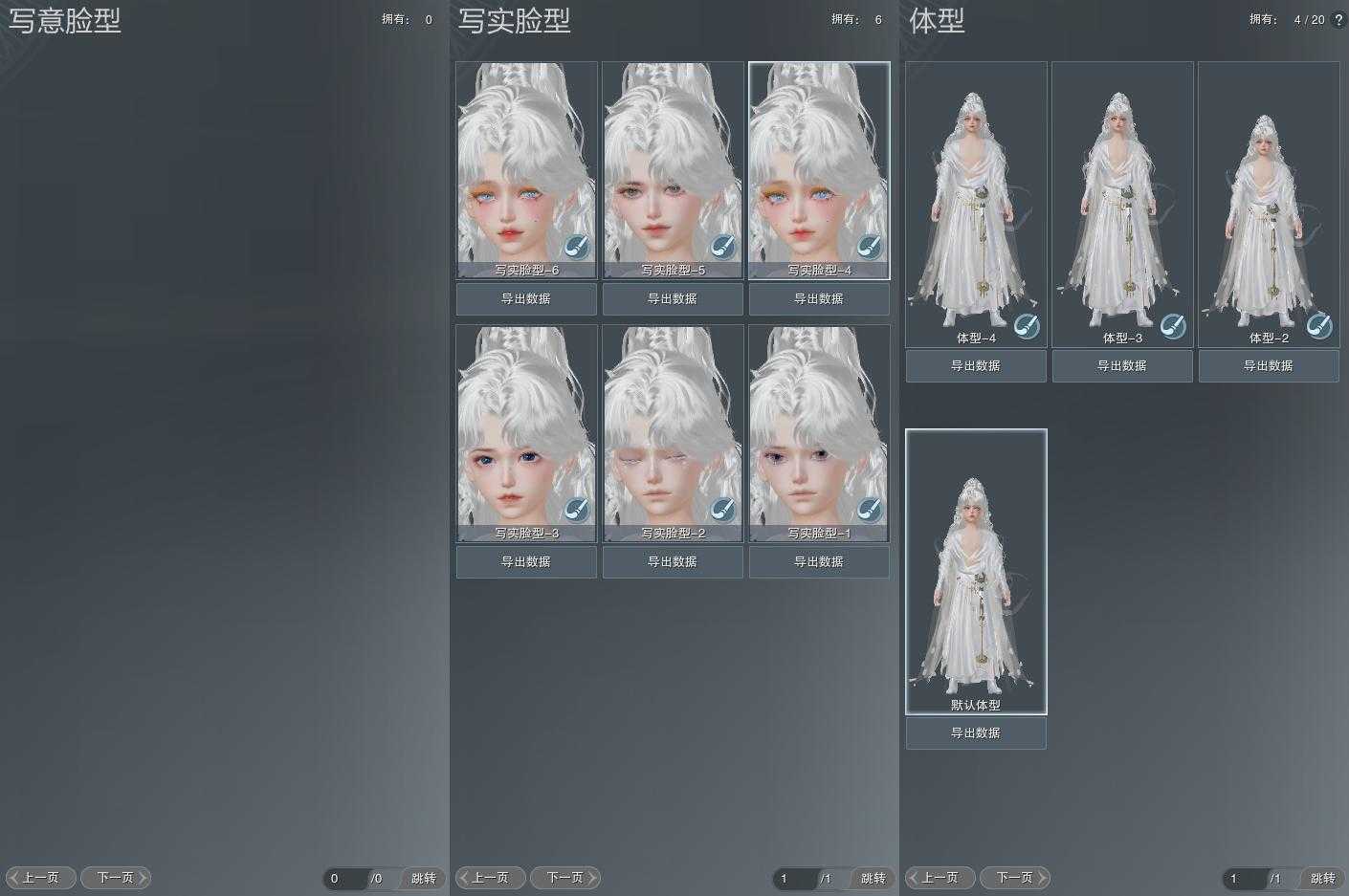 【捏脸】写意脸型0个,写实脸型6个,体型4个