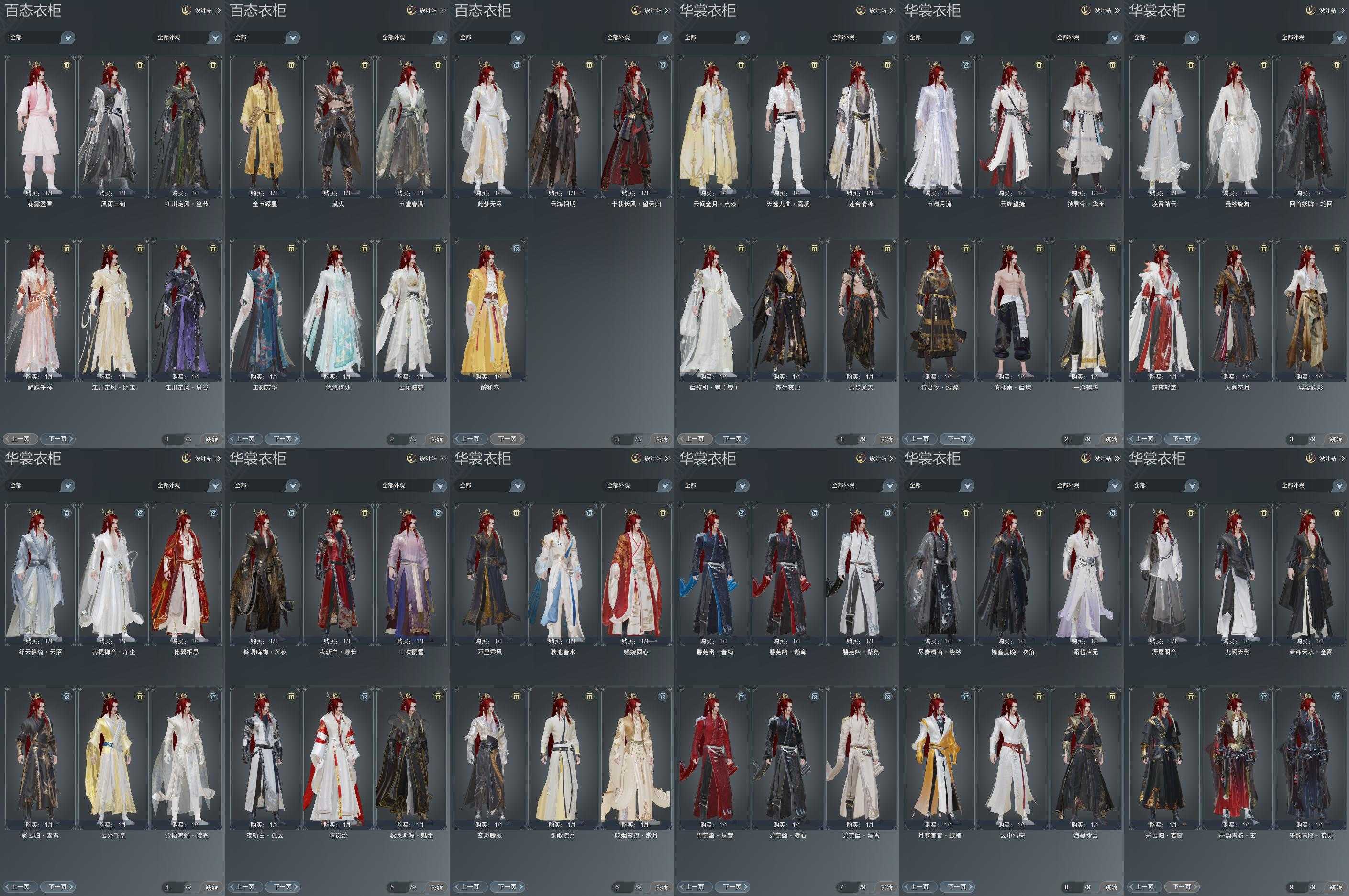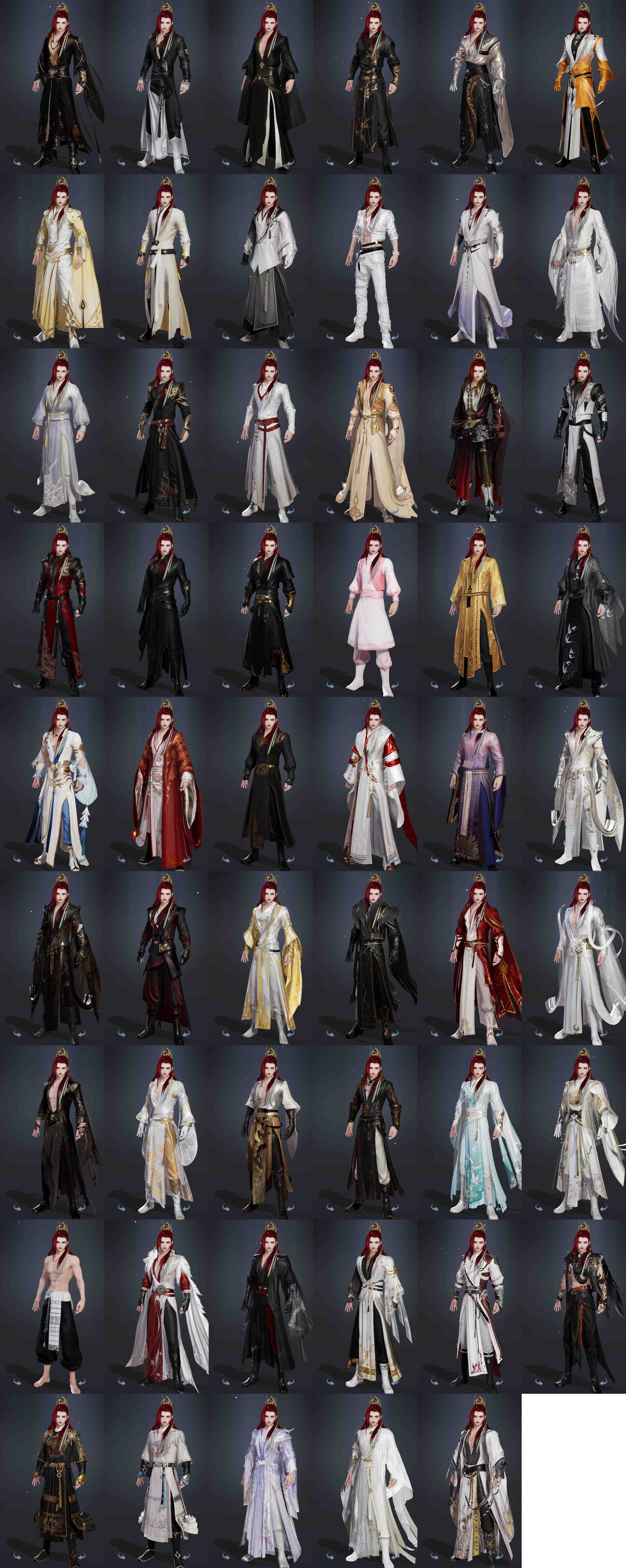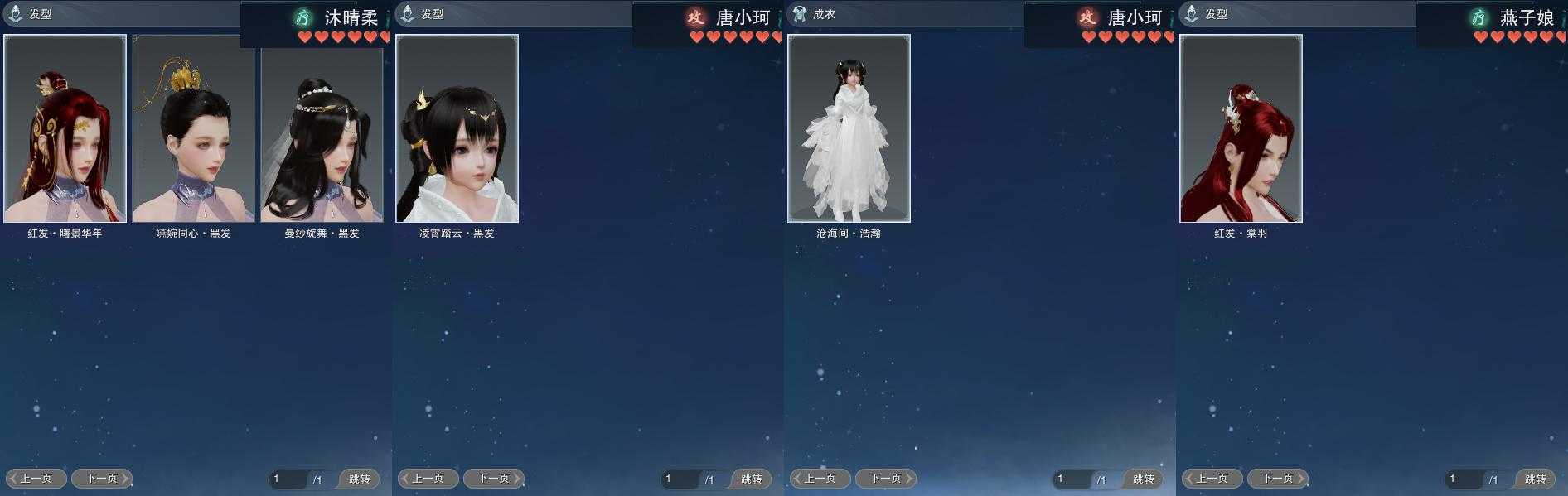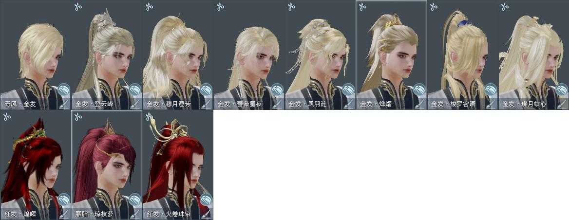 【发型】金发8个[狐金, 资历金, 猪金, 凤金, 蔷薇金, 穆金, 三代金, 无风金发], 红发5个[六红, 十红, 紫发, 猴红, 兔红], 黑发25个, 白发20个, 盒子发型[一代七夕白, 丝路黑, 踏云黑发, 四代七夕黑发, 绿盒黑发, 小白龙黑发, 乘风黑发, 晴岚绘黑发, 山吹樱雪黑发, 白楼兰黑发, 黑楼兰黑发, 丝路白, 踏云白发, 四代七夕白发, 飞皇黑发, 五代七夕黑发, 黑谪仙白发, 乘风白发, 晴岚绘白发, 山吹樱雪白发, 白楼兰白发, 黑楼兰白发, 飞皇白发, 五代七夕白发, 小金龙黑发, 小金龙白发, 黑傣族黑发, 红黑妖眸盒黑发, 西游盒黑发, 八七盒黑发, 西游盒白发, 莲台盒黑发, 莲台盒白发], 总页数7