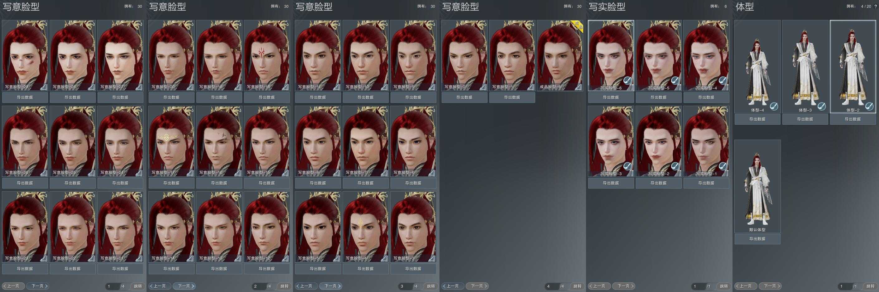 【捏脸】写意脸型30个,写实脸型6个,体型4个